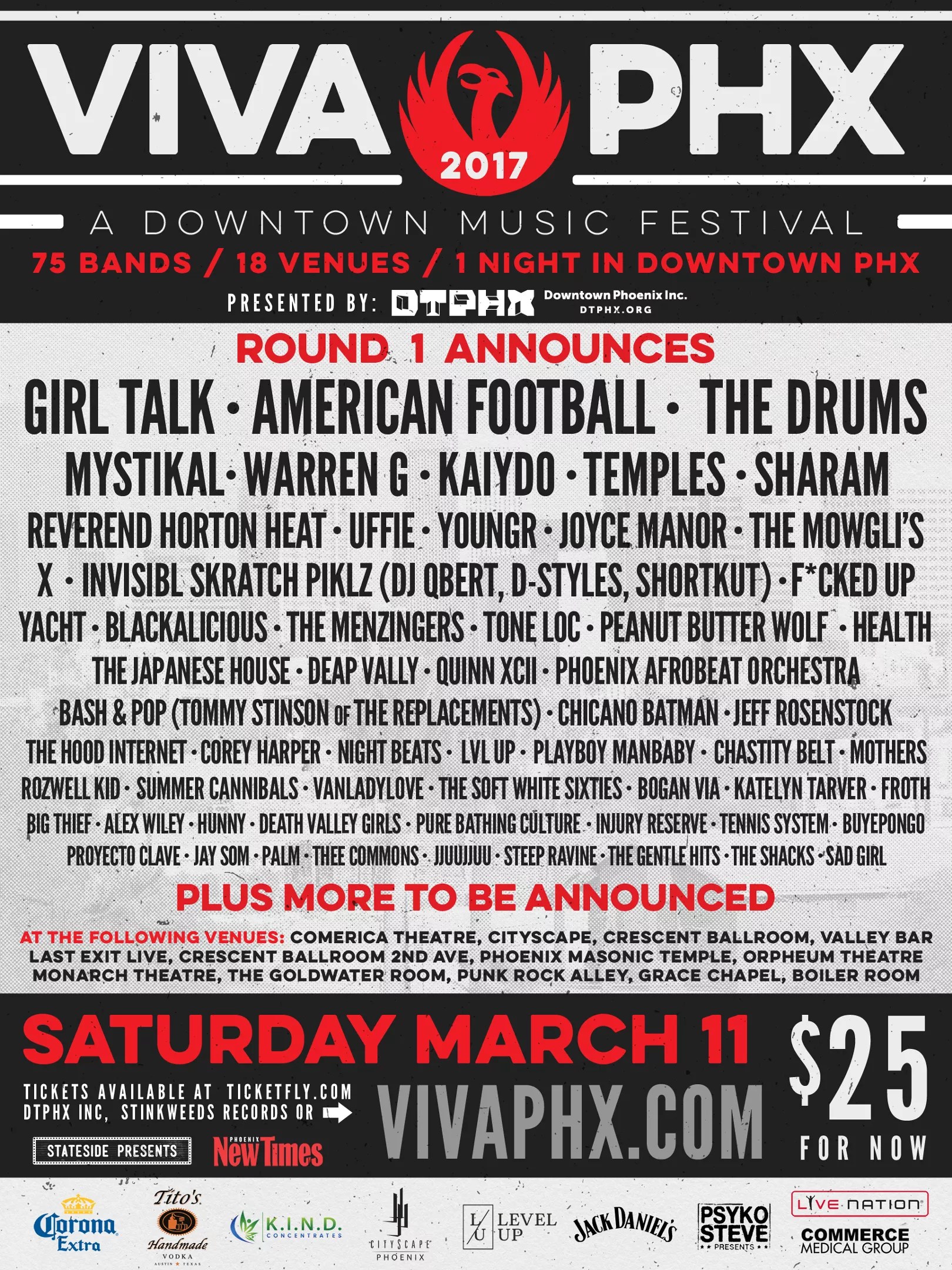 Stateside Presents has announced the first wave of bands that will play Viva PHX, which will take place at 18 venues around Downtown Phoenix on Saturday, March 11.
