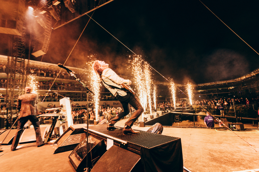 The Waste Management attendee demographic and the bro country fandom is a Venn diagram with a lot of overlap, so Tyler Hubbard made sense as an opening act (although perhaps not as an opening act for the Killers). The former Florida-Georgia Line singer twanged his way through hits like FGL’s “Cruise” and his own “5 Foot 9,” stopping occasionally to compliment our January weather and discuss the love of Jesus.