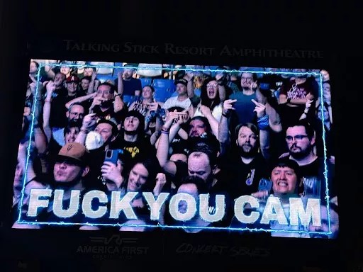 Is it even a party without a ‘fuck you’ cam? This was the one at Talking Stick Amphitheatre on Aug. 27, 2025.