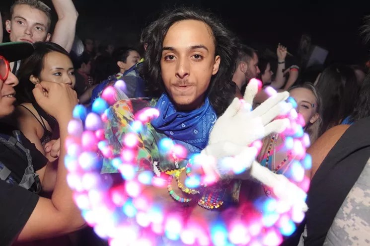 And, as we mentioned, rave gear is permitted. “Kandi is cool. Same thing with your LED gloves, your hula-hoops, flow toys, masks … pretty much anything,” Groove says. “We don’t restrict those sort of things.” As a matter of fact, there will be an entire area devoted to people offering light shows. “They’re even reserving part of the Rodeo Arena’s grandstand seating for that,” he says. “We’re actually going to be holding a special section specifically for the [LED]