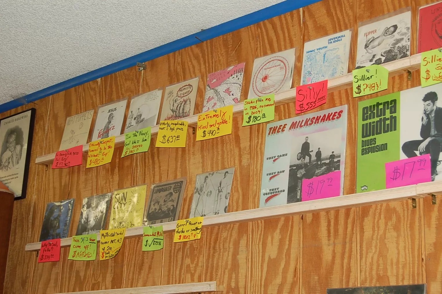 Pawlicki: There wasn’t much to the space. It was small [with] wood paneling everywhere. It was very catch-as-catch-can. Most of what was inside had been donated by other stores. The bins were from Tower [Records]. Divider cards were from other places.