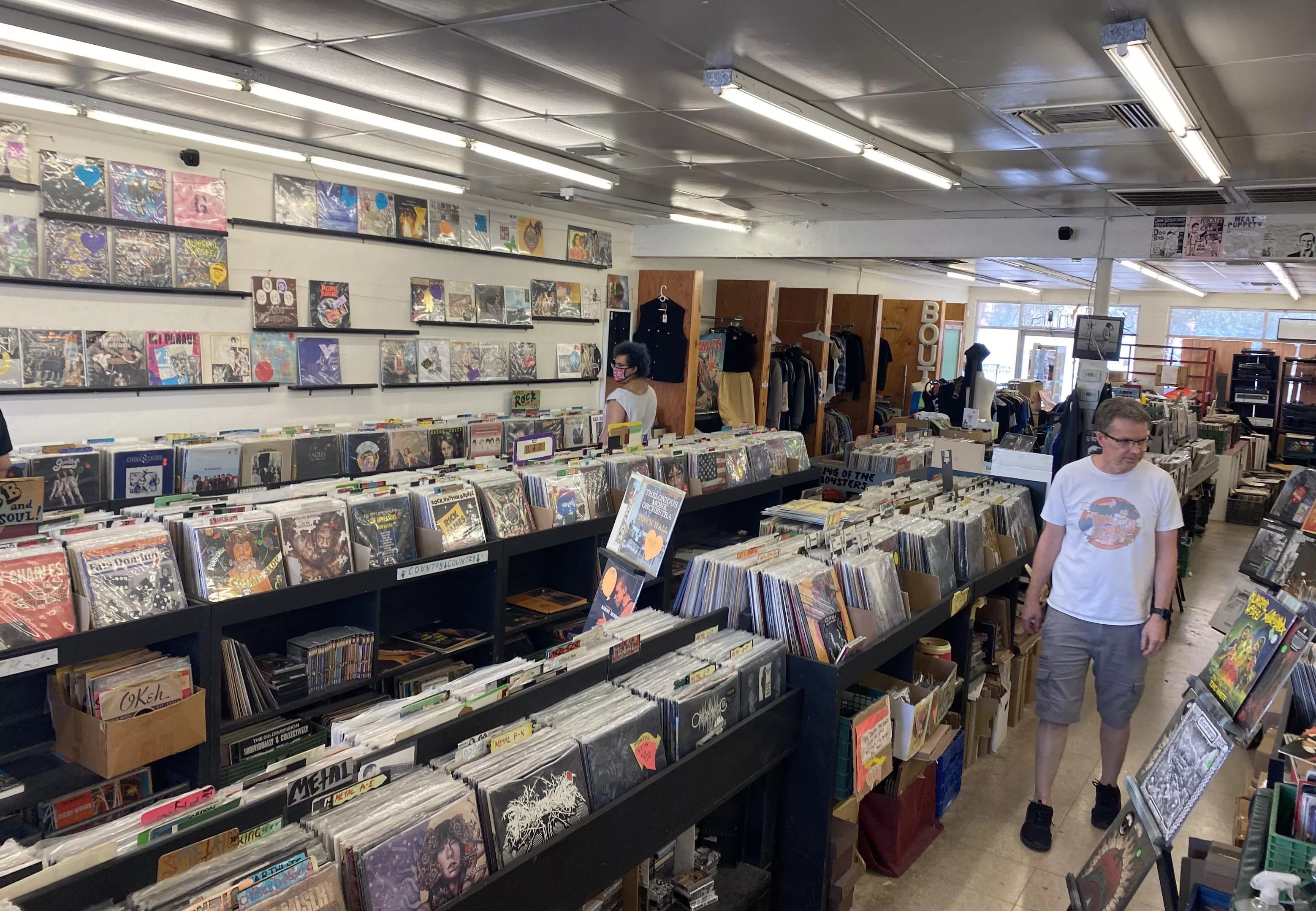 The same can’t be said for the store’s owner, Michael Pawlicki, who looks sweaty, disheveled, and wiped out by the heat. At the moment, he’s all smiles and doing what he loves: talking music and selling records.
