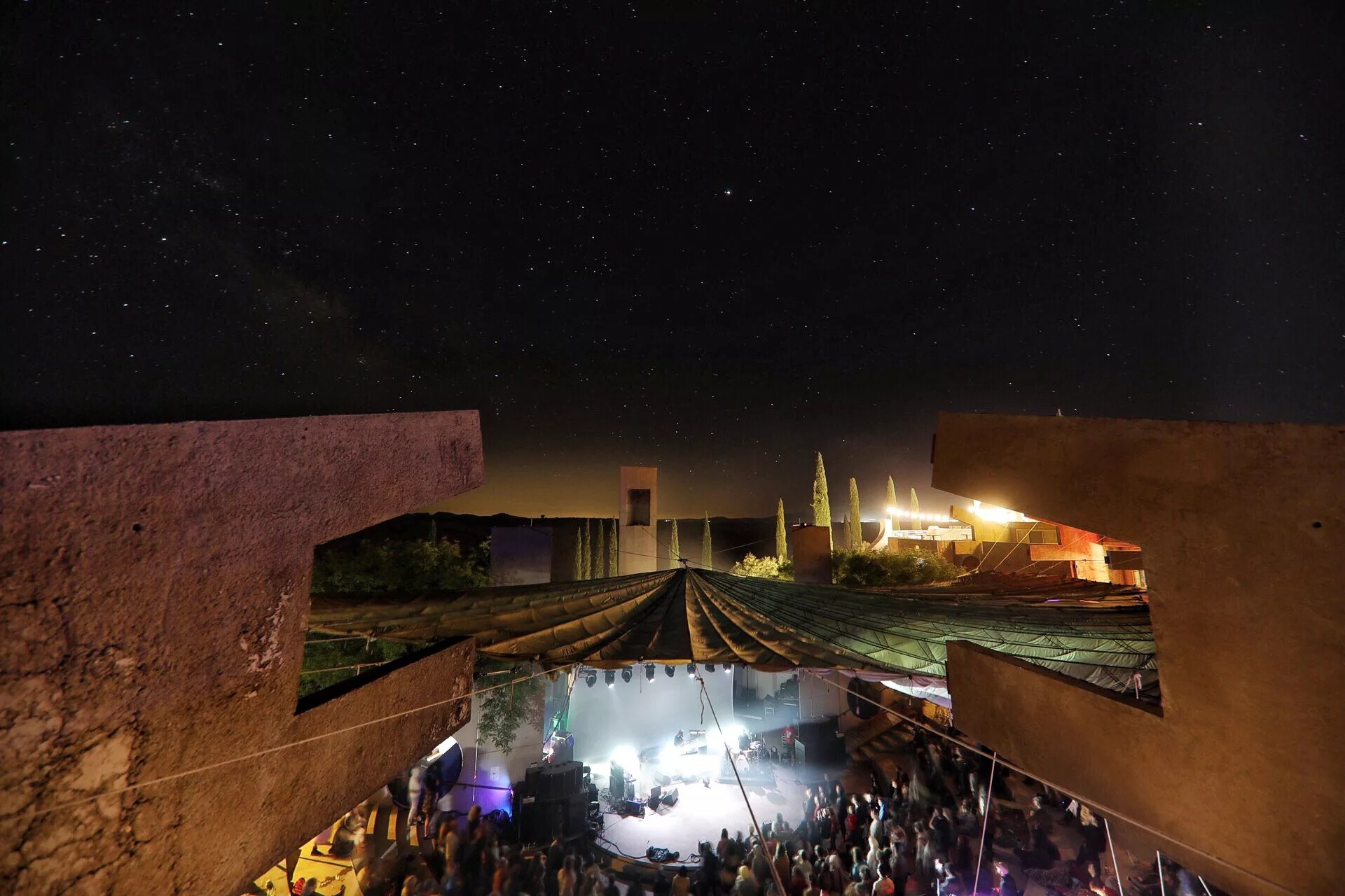 For returning FORM-goers, the biggest change this year was the campgrounds. Last year, the camps were set up in the Minds Garden, which was right outside the Arcosanti grounds. This year, the camps were moved down into the canyon where Skrillex played last year. It was an interesting trade-off: Instead of hot and sweaty tents last year, we had to contend with the cold chill of the canyon. And whereas last year you could step outside your tent and be in The Vaults in a couple of minutes, this year you either had to wait for a shuttle or walk back up to Arcosanti.
