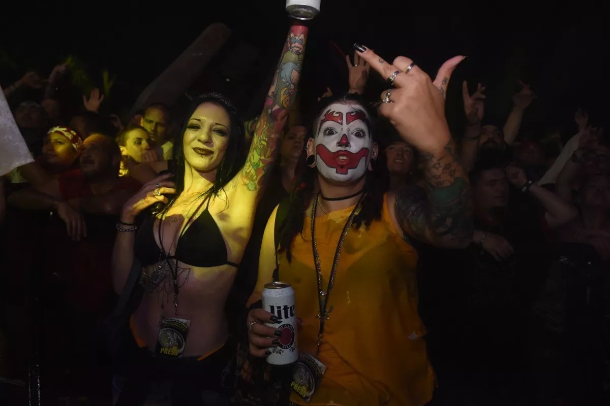 Behind the scenes, the OKCPD was addressing it by threatening to shut down the whole thing even before it began. Once the festival got underway, the specter of overzealous law enforcement manifested in a kind of paranoia and swirl of rumors that ranged from believable to uproarious. Allegedly, Juggalos waiting outside the premises, hoping to land free tickets from generous homies with extras, were ticketed for trespassing; people were getting nabbed for marijuana; a girl got arrested for toplessness; undercover cops were posed as medics. At one point, someone even started a rumor online that Violent J himself had been hauled off for punching a cop. (He was not.) By far the best rumor: “A Juggalo was arrested for showing a cop his butthole.” (I wanted this to be real, dear reader, but alas, it was not.)