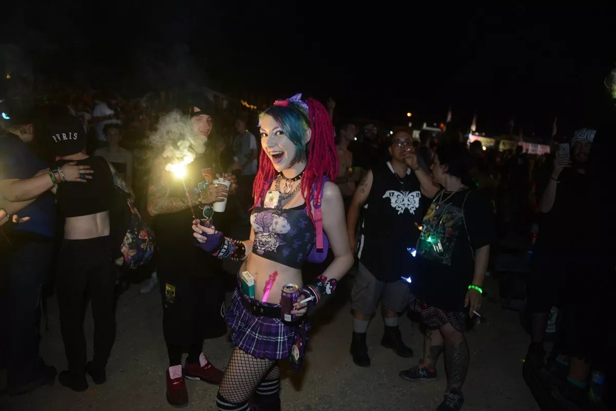 He also notes that you may see other things flying around the crowd in the bit, too. “One year one of the bands said, ‘Okay everybody reach down and grab a piece of trash and throw it’ … and it was just a cloud of shit hovering over the crowd, it was pretty unbelievable.”