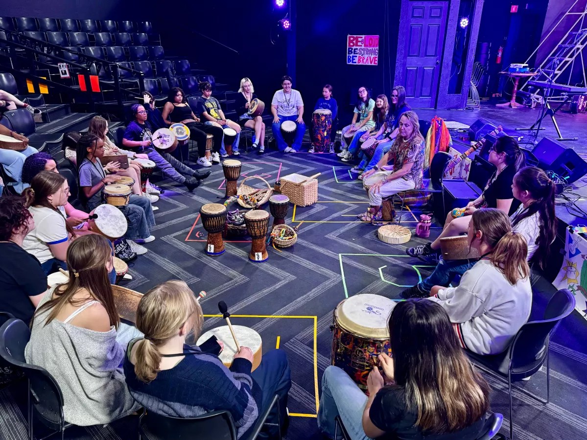 Drum circle at Girls Rock! Phoenix’s summer camp program.