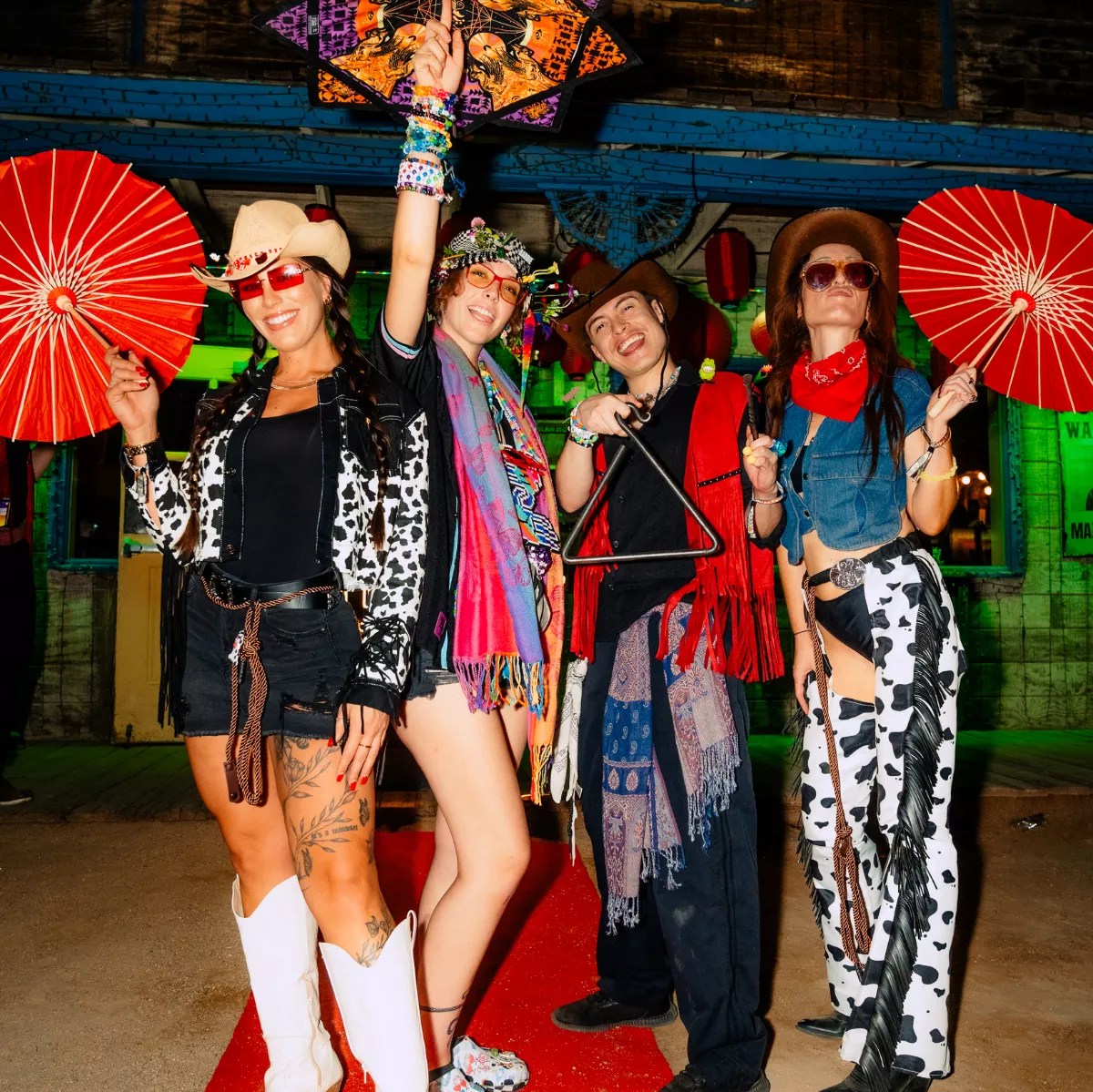 One of the best parts of Goldrush’s Wild West theme is the level of creativity it encourages. While the theme naturally lends itself to western-inspired, desert-themed looks, it’s always cool to see someone elevate that to the next level or even do their own thing entirely. Some of my favorites of the night included a girl decked out as a latex-inspired mushroom, a flower with an LED ‘fro, two men in an inflatable horse costume, and a large group of friends all dressed to varying levels as cows.