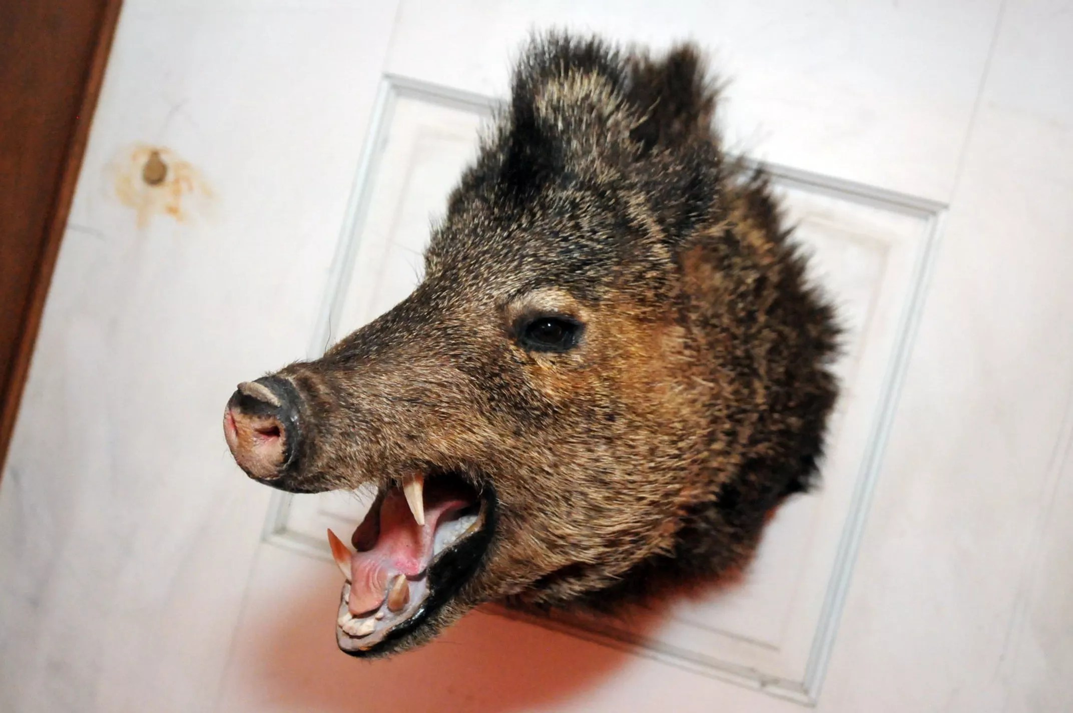 Meanwhile, the walls are decorated with an eclectic collection of art work that includes some thrift store paintings, a taxidermied javelina head, and a collection of ink sketches by a fashion designer.