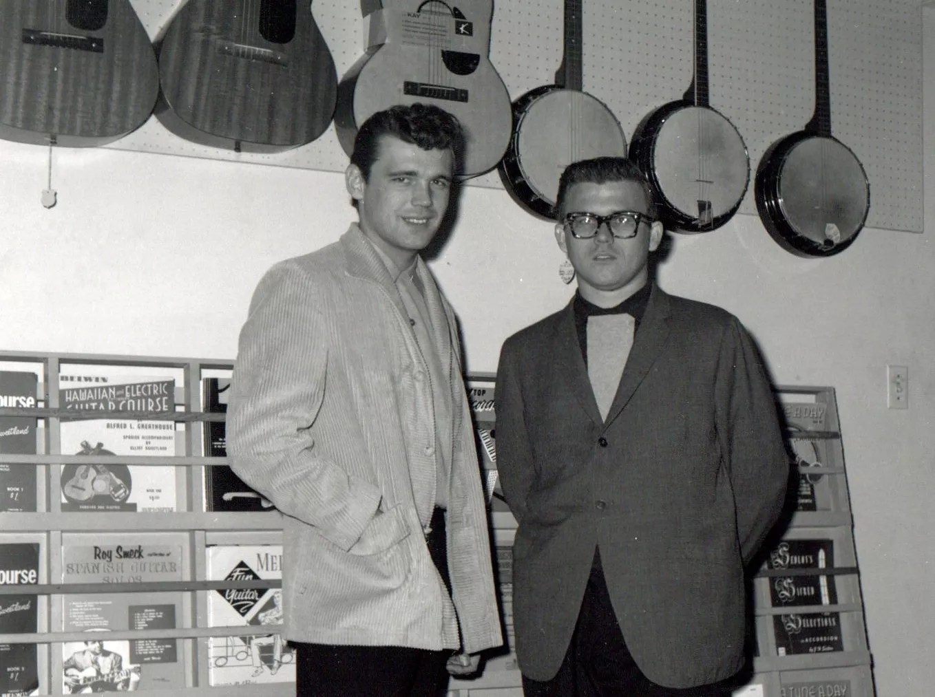 Angelo “Ziggie” Zardus (left), founder of Ziggie's Music, with rock 'n' roll legend Duane Eddy (right), who purchased his famed Gretsch guitar at the shop.
