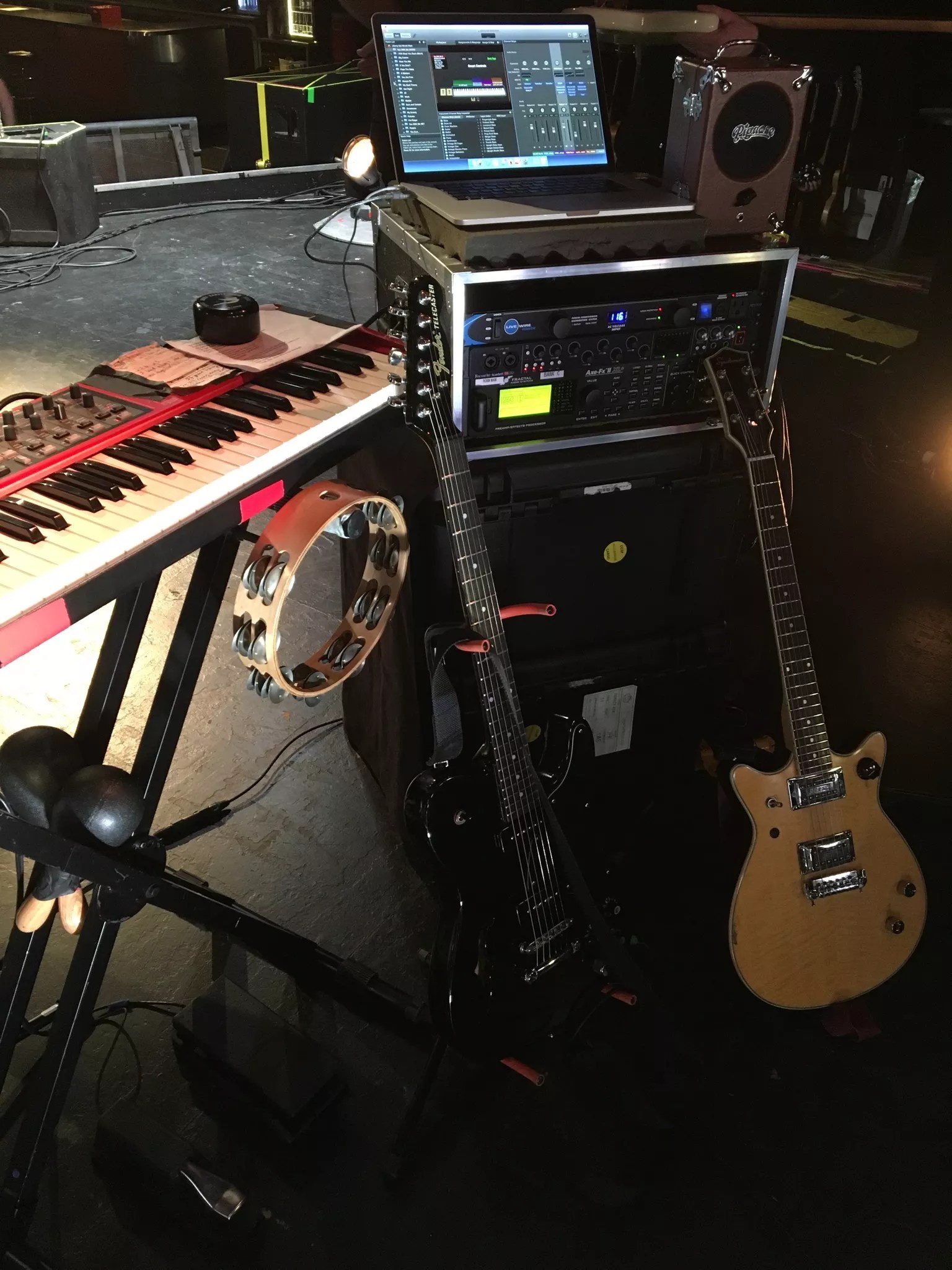 Robin Vining: As far as having a “signature tone,” I’m very into using whatever is appropriate for the song I’m playing, and who I’m playing with. For instance, here on this tour with Jimmy Eat World, we are all using Fractal Audio’s Axe-Fx II XL+ instead of usual amps, and there are no speaker cabinets on stage. … It all just goes straight to the house mains. With those, everyone tried to match as closely as possible the tones from the albums. The Nord keyboard I’m playing live is just acting as a midi controller for various sounds that are set up for each song in Apple’s MainStage.