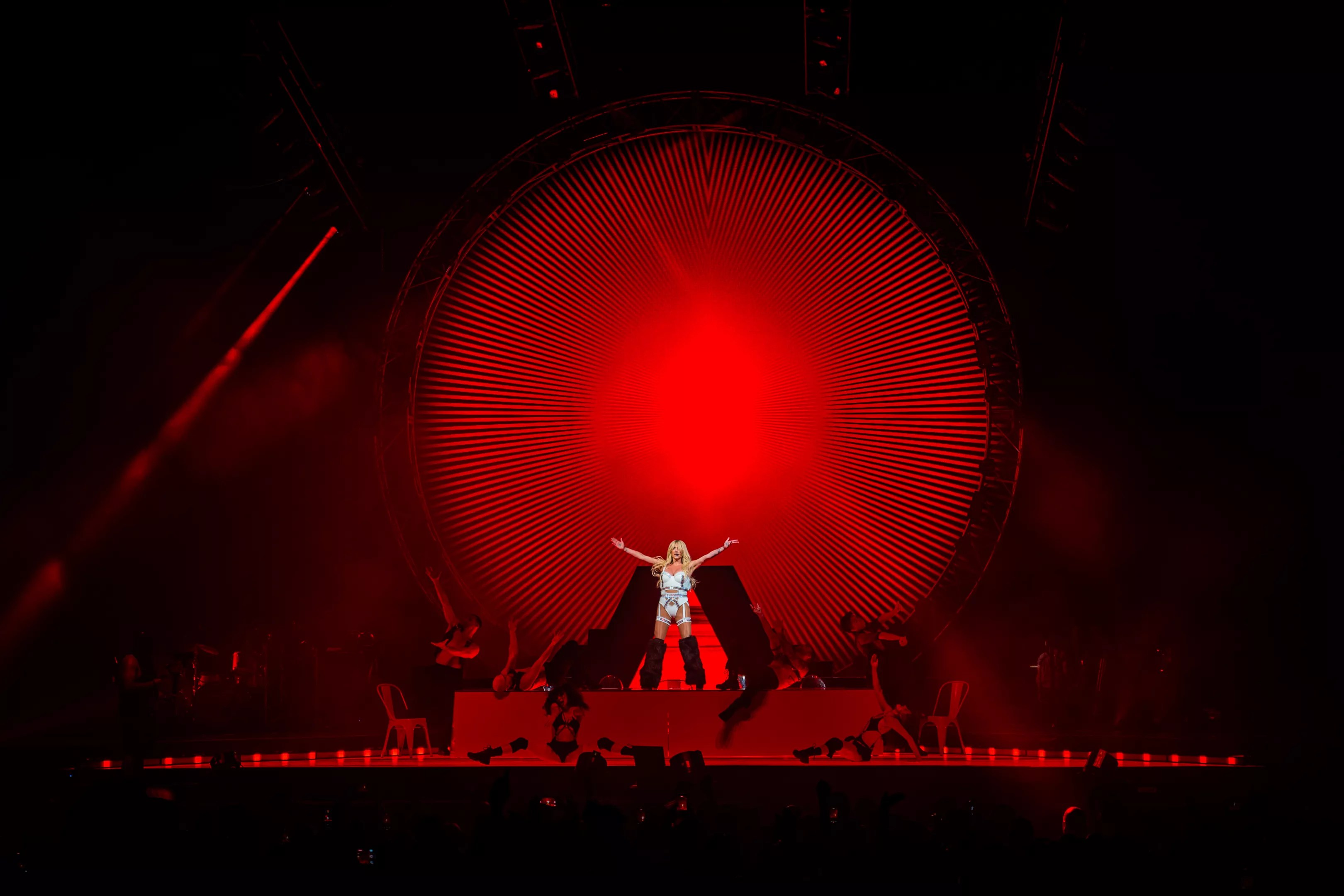 Act Four saw another outfit change, this time, a bold handprint top, as she ran through tracks from her latest album, including the dancey and soulful “FREEDOM.”, the unapologetic and bold “ATTENTION!”, the avant-garde “JOYRIDE.”, and through each song, even as the whole crowd was dancing, you could see the real party happening in the pit. And once she mashed her made-for-line-dancing track “YIPPEE-KI-YAY” with her successful 2012 collaboration with Pitbull, “Timber,” bringing a newer fan favorite with a mainstream hit for a fun danceable moment, that energy spread through the entire venue once again for the fourth act.