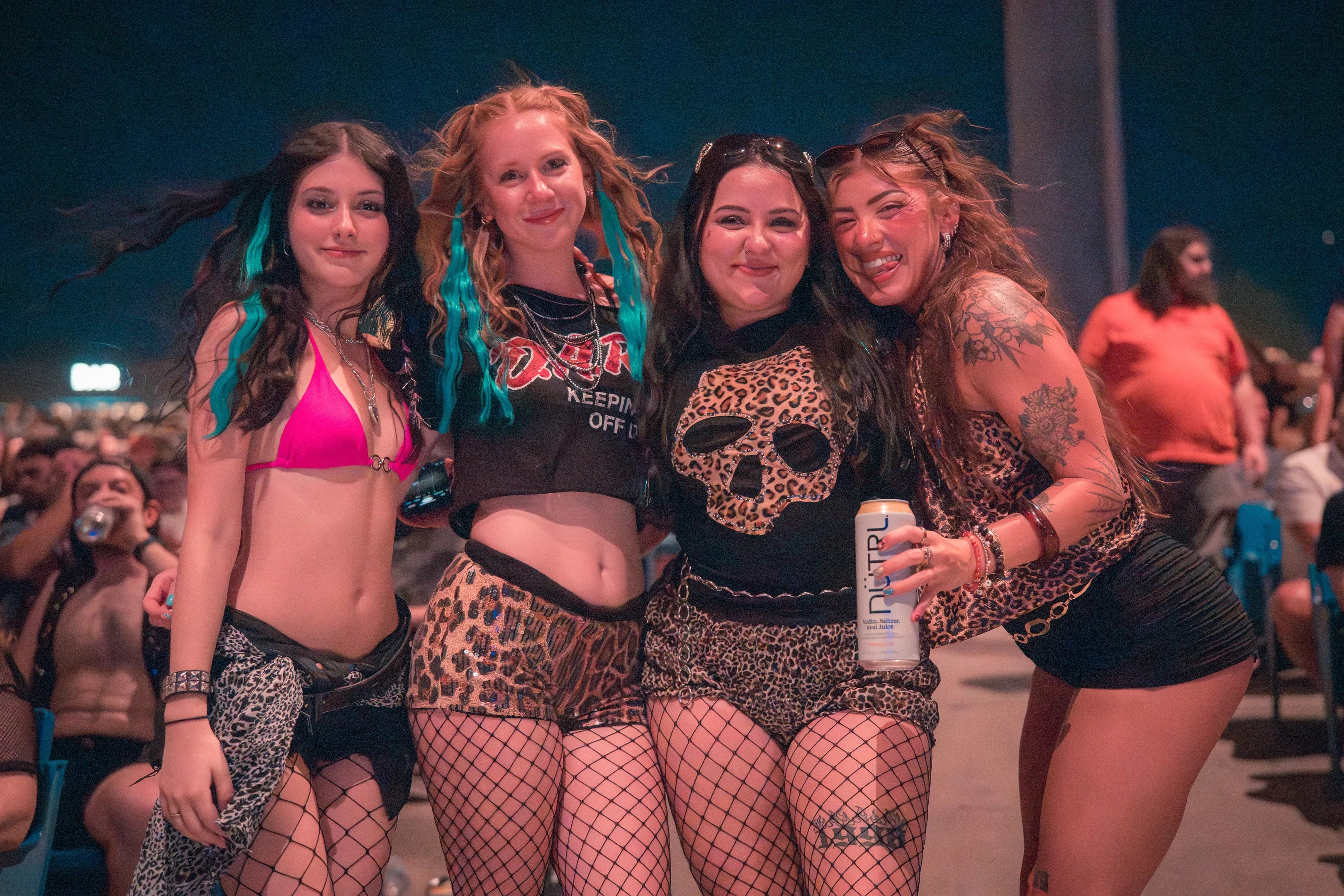 Of course, many went for specific nods to Kesha’s fashion, with distressed tees and denim, American prints (also a nod to the weekend) and merch across all eras. Paired with everyone out with huge sunglasses on, holding giant fans and huge frozen cocktails, this concert had a larger-than-life aesthetic, and everyone seemed to play into it. Although I do have to say, for a show called Tits Out, very few people leaned that far into it, with only a handful of attendees wearing mesh materials or pasties and only a few men going as far as not to don shirts. Not to imply I expected a revived “Free the Nipple” party, but I was still shocked at even the lack of bras in the crowd.