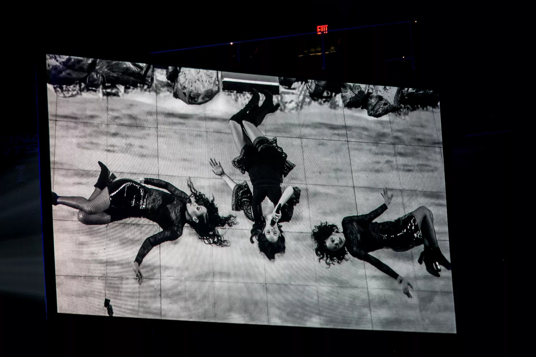 For “Pretty When You Cry,” Del Rey and her dancers laid on the floor. She sang as they sinuously waved their arms overhead. With the ocean projection playing underneath them, they looked like they were underwater. It was a neat bit of staging: I had never been to an arena show where the headliner did a whole song lying flat on their back.