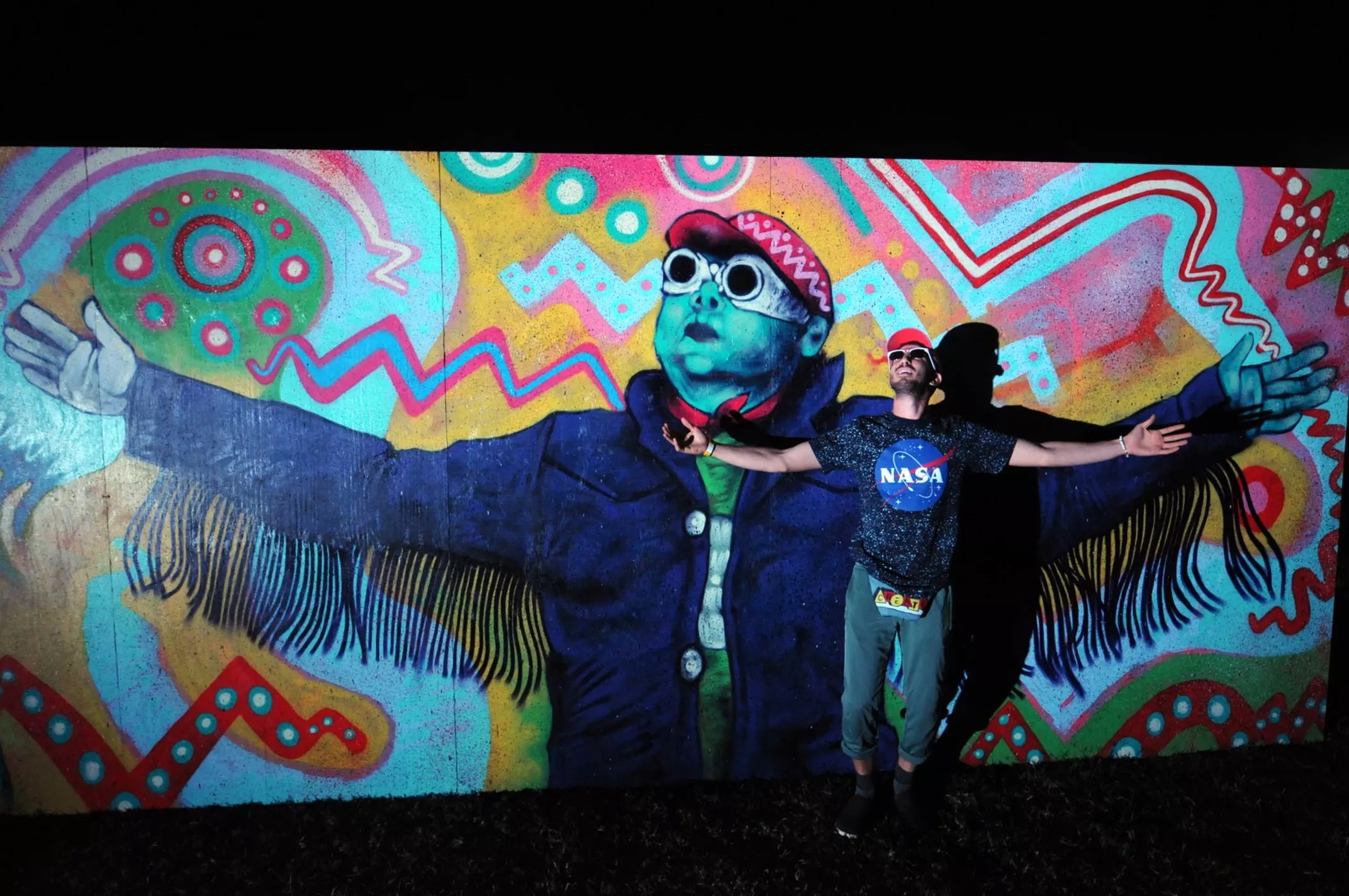 Posing in front of Jeff Slim’s mural.