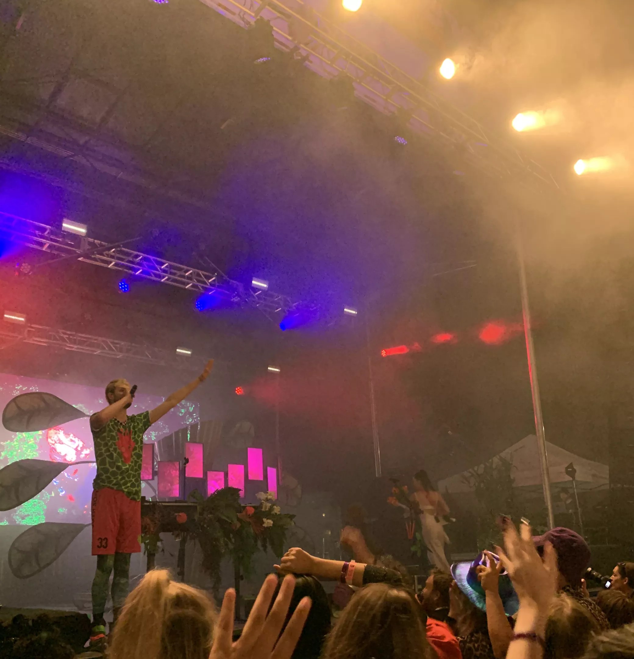 Festivalgoers started to head over to the Kesey Stage to see Sofi Tukker before The Growlers finished their set, and with the elaborately decorated stage that resembled the lair of Batman villain Poison Ivy, they knew they were in for an experience before the duo even took the stage. The ground shook and the audience moved as soon as Sophie Hawley-Weld played the first note on her guitar.
