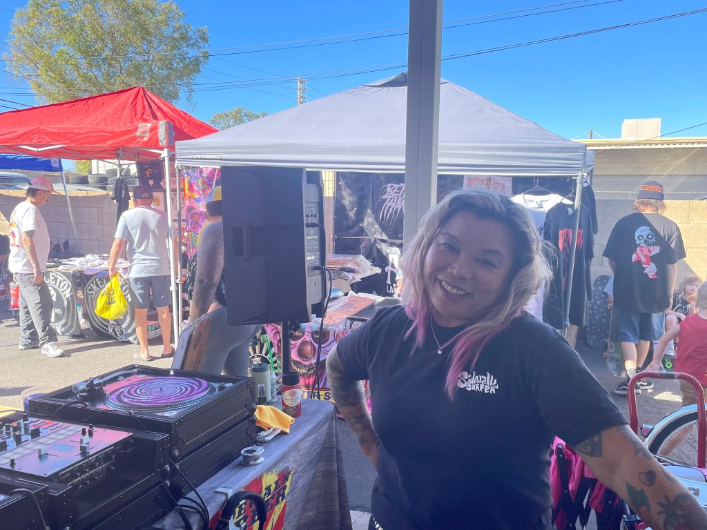 The area behind the store was full of vendors and customers selling skate, snow and surf-related goods. And you know, in Arizona, we’ve got to talk about the weather. It was the perfect day for hanging outdoors, chatting with friends, and perusing the items available. A typical hot and sunny October day.