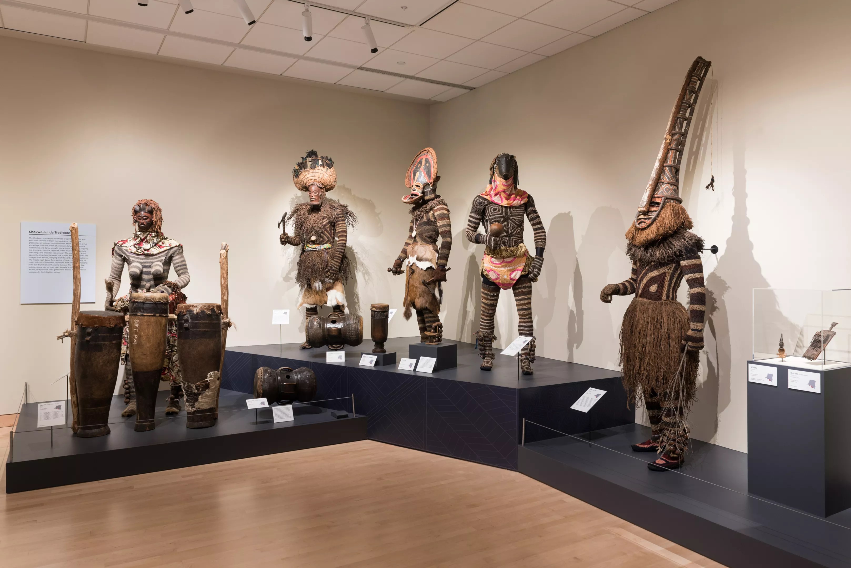 Installation view of “Congo Masks and Music: Masterpieces from Central Africa.”