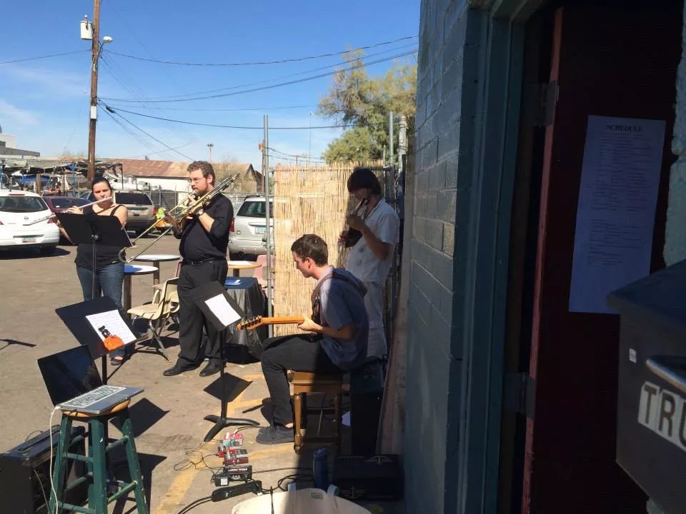 Composer Jacob Adler puts on an annual Otoacoustic Emissions concert on Halloween night at St. Augustine’s in Tempe. Clocking in at more than an hour, Adler and an ensemble of musicians drawn from the community (including OME’s Bayer) play a droning composition that grows so loud in intensity and power inside the church that it feels like the heavens themselves are crashing down. There are also other active new music ensembles in town like Pincushioned and the Driftwood Quintet that tour the country and regularly perform at university events and venues like the Nash.