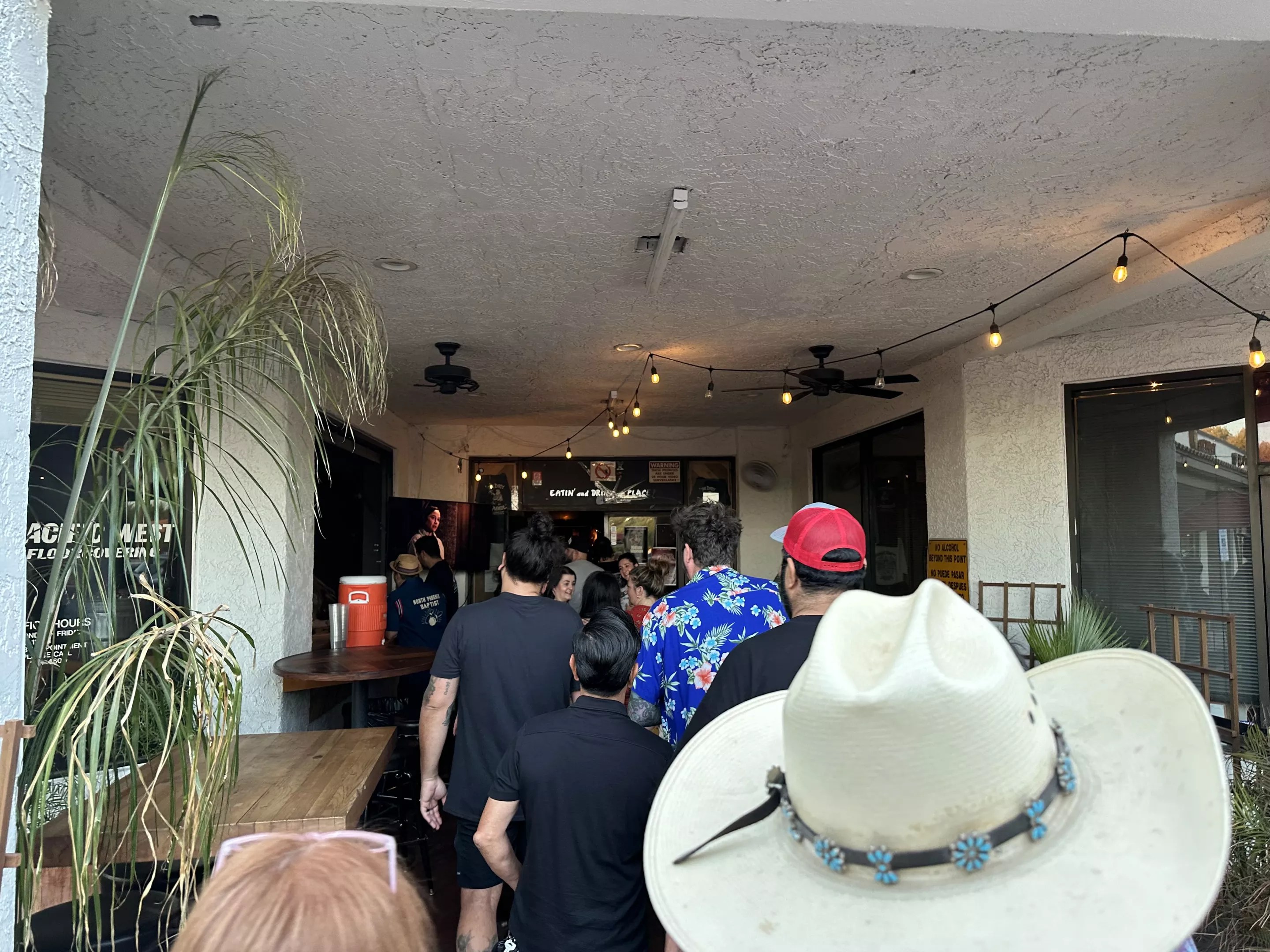 Like many daytime soirees, the fun starts before the event officially commences. This holds for Rooster Club. People start lining up an hour or so before doors open, making the line and the parking lot spots for getting a head start on socializing.