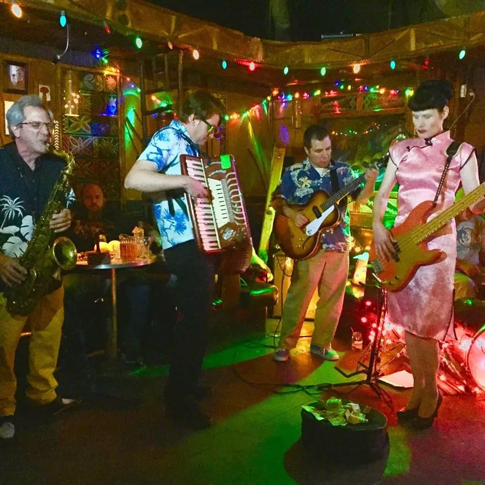 This ensemble of seasoned local musicians is a great band to get woozy to. Or, maybe they’re the ones causing those woozy sways with breezy original tunes. Their sounds keep you moving; their infectious blend of exotica, lounge, and surf-y sounds are breezy and hypnotic. The band consists of Ruth Wilson on bass, Eddy Detroit on drums and percussion, Andrew Jemsek on organ and accordion, and Jamie Paul Lamb on guitar. Each has a lengthy resume of musical projects.