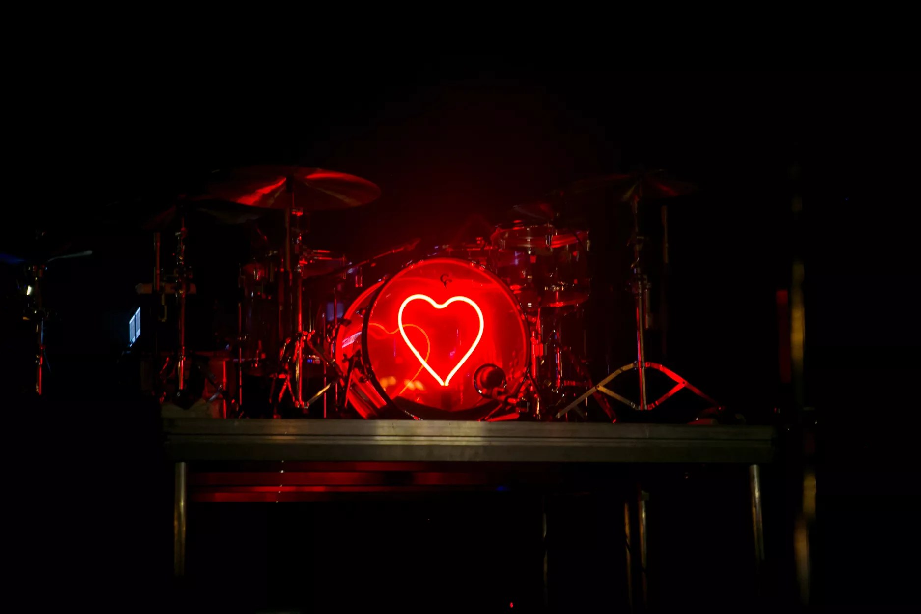 I quickly saw why they were so beloved when they started their set. Aside from a glowing heart on their drum kit and a small piano set on a riser next to the drums, their stage setup was relatively bare. They had an excellent light show, bathing the band in purple and red and occasionally spraying neon rainbows and strobe effects on them throughout their set. They didn’t need much in the way of stage dressing, though.