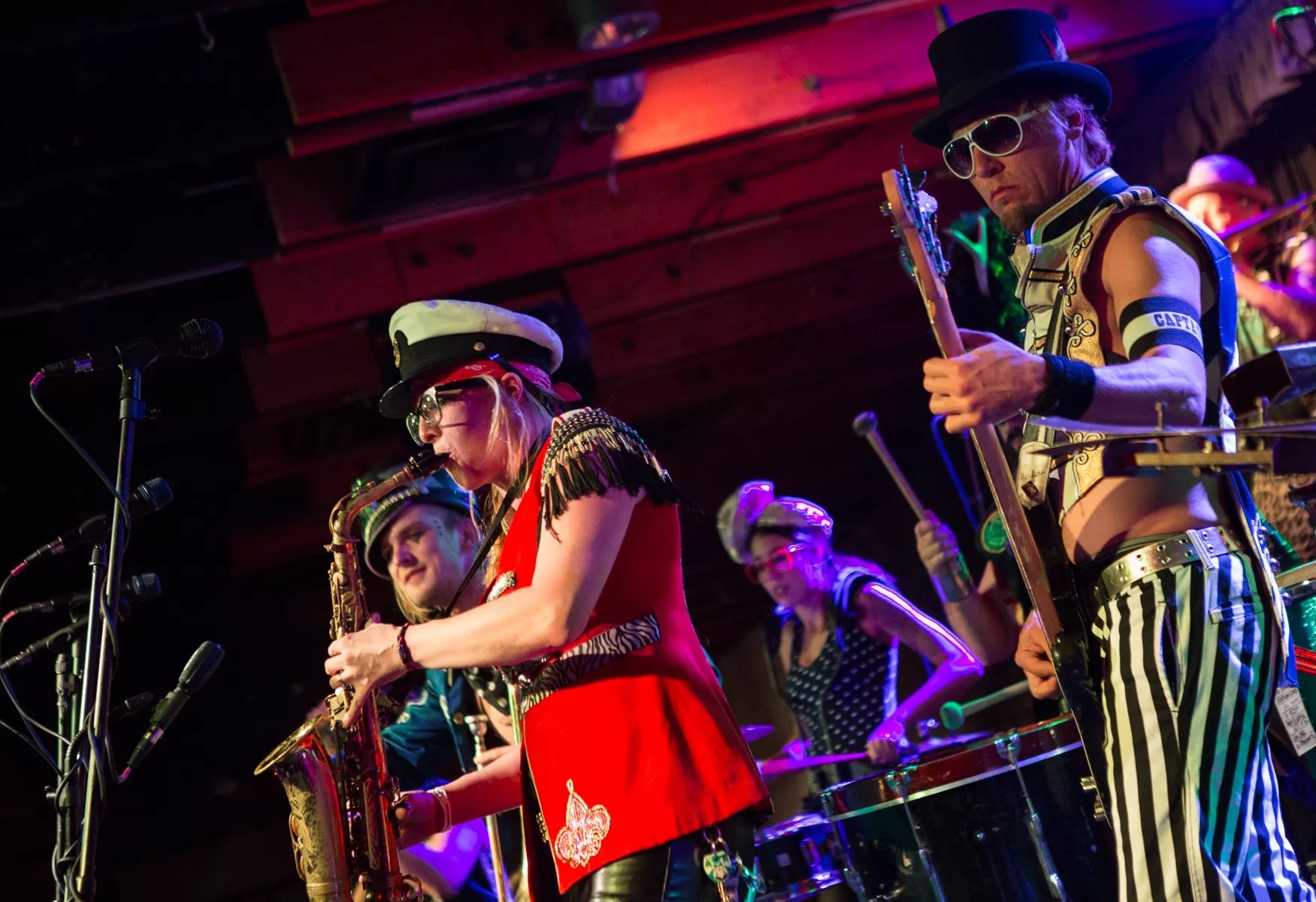 What started in Portland, Oregon, as a Fat Tuesday party back in 2003 has evolved into a must-see national act. MarchFourth’s high-energy and rousing sounds bring to light the deepest grooves of funk, swing, rock, and jazz, and their style pulls from an array of influences, like Sergeant Pepper leading a freaky Cirque du Soleil performance from the bandstand or European Gypsy camps stumbling upon the rhythms of Brazilian jungle tribes.
