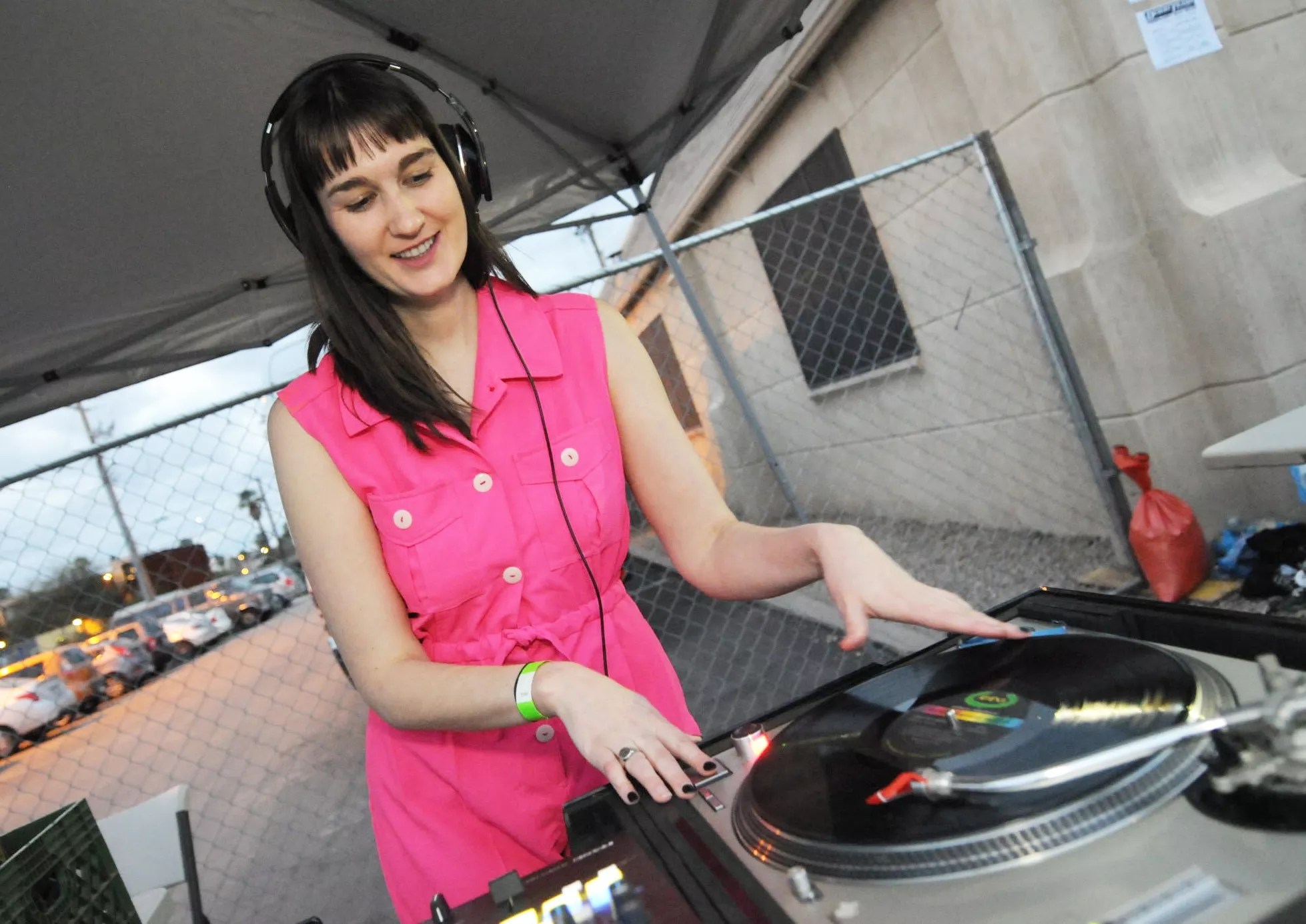 DJ A Claire Slattery cues up some rock ‘n’ roll on vinyl.