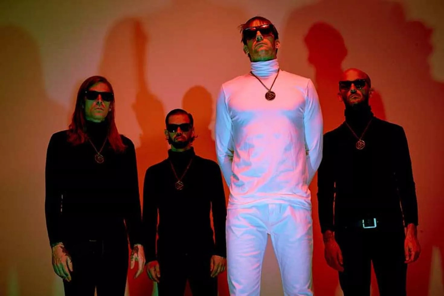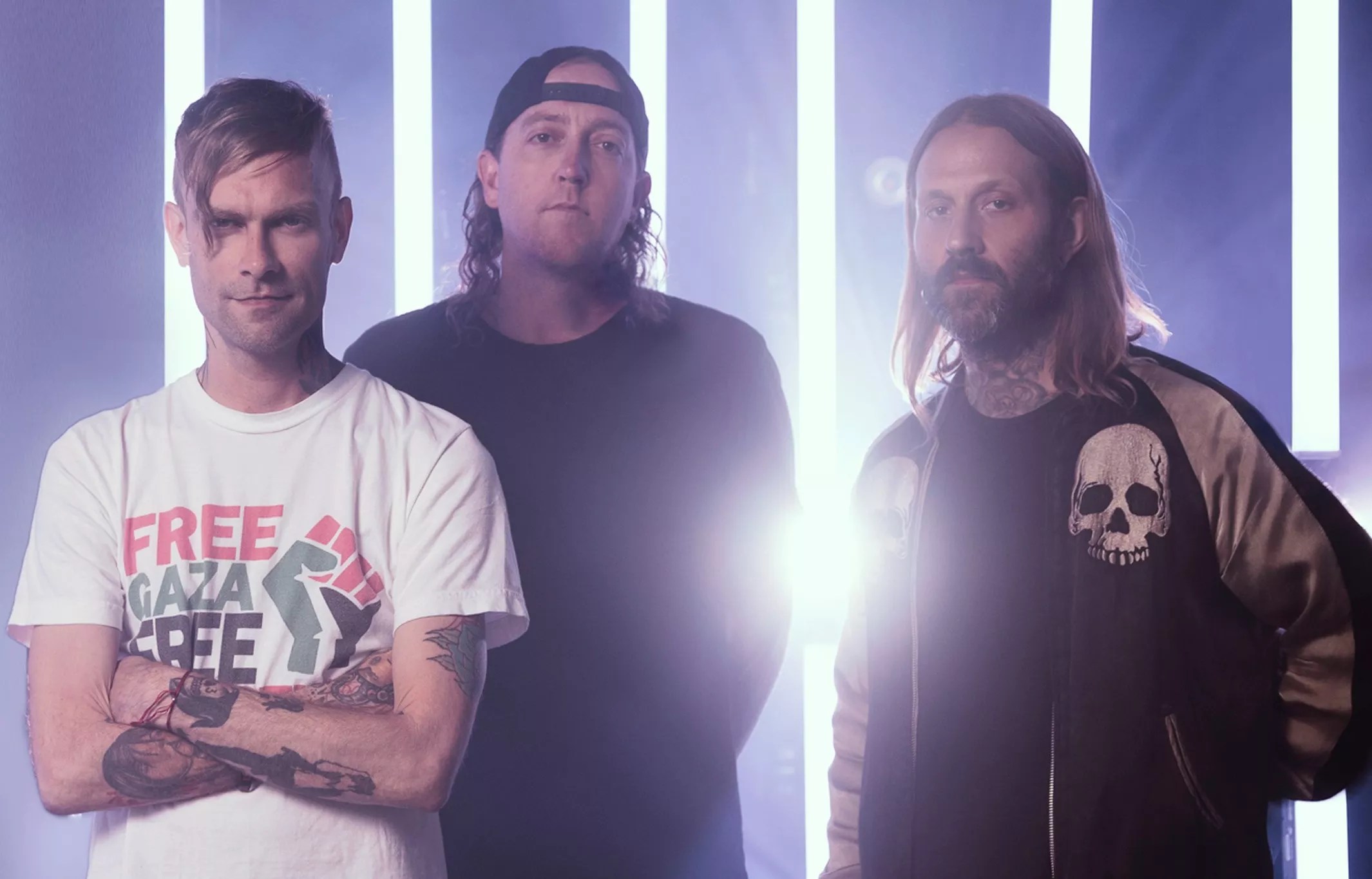 Bert McCracken (left), Jeph Howard (center), and Dan Whitesides (right) of The Used.
