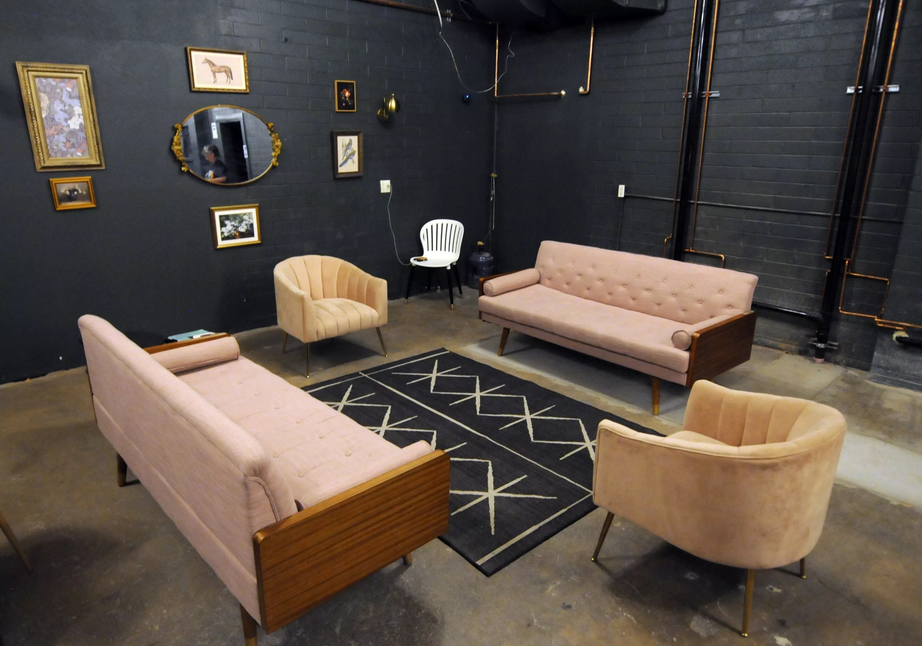 Midcentury modern-style seating inside The Rosetta Room’s east wing.