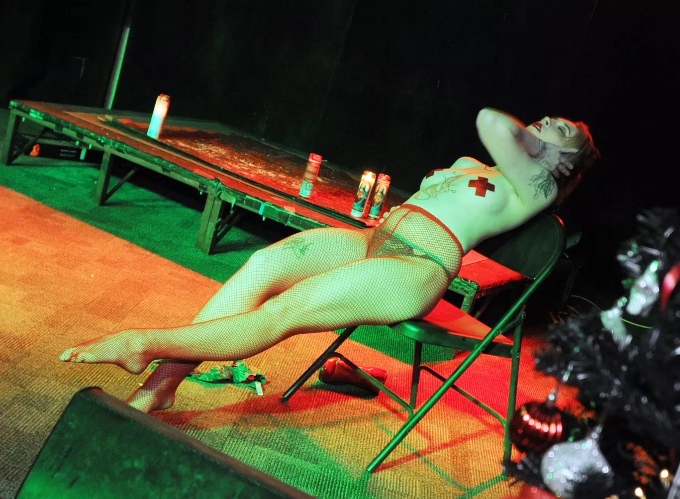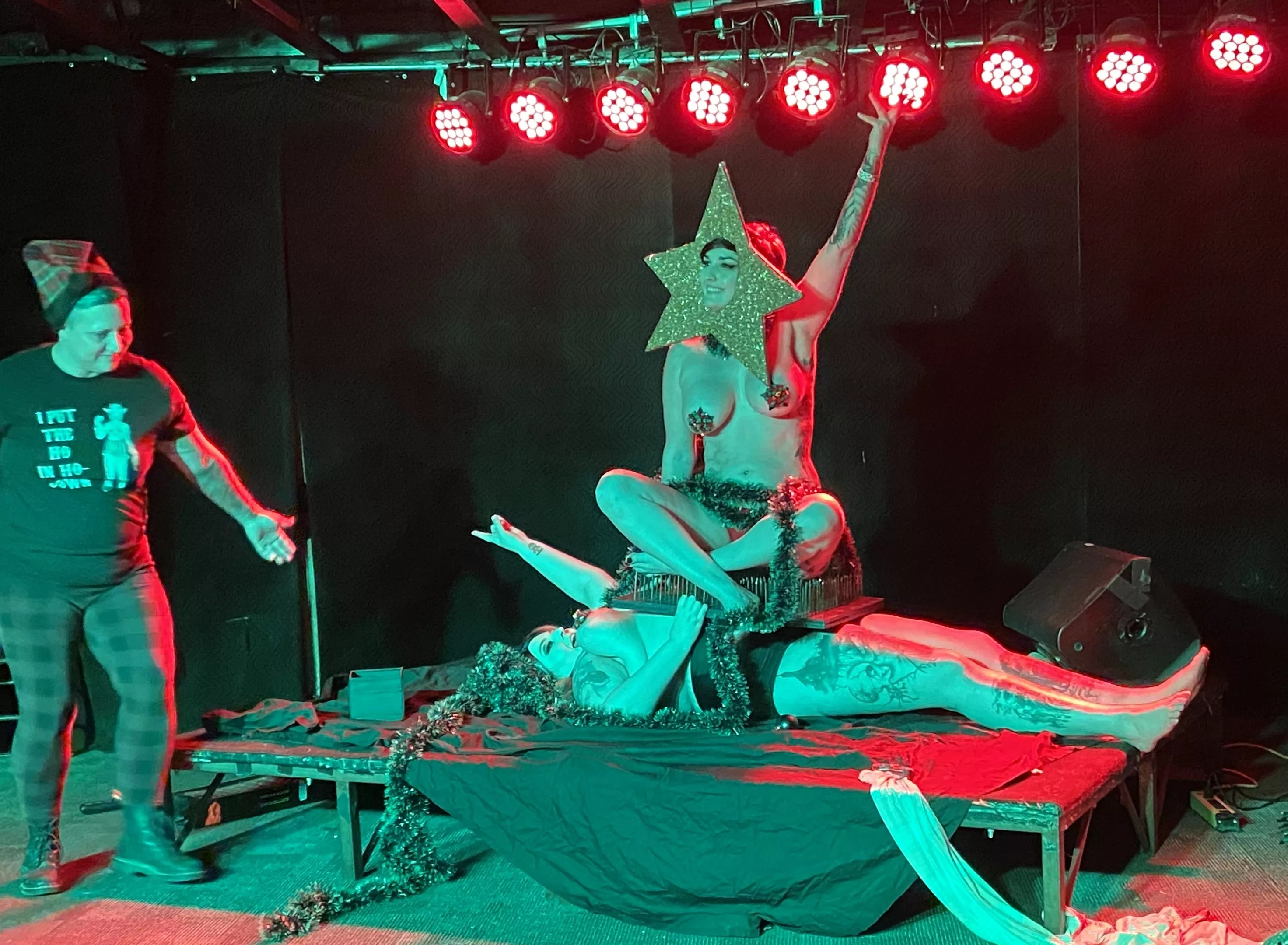 The event, “Bodies for Christmas: An Undead Sideshow,” which was produced by Pain Proof Punks founder Rusty the Clown and local burlesque artist Britni Bloodshed, featured Yuletide-themed and fetish-filled performances by drag king Gee Notorious and dancers like Femina Flower, Ramoana, Irene Silver, Kinky Kirra and Lexi Locket.