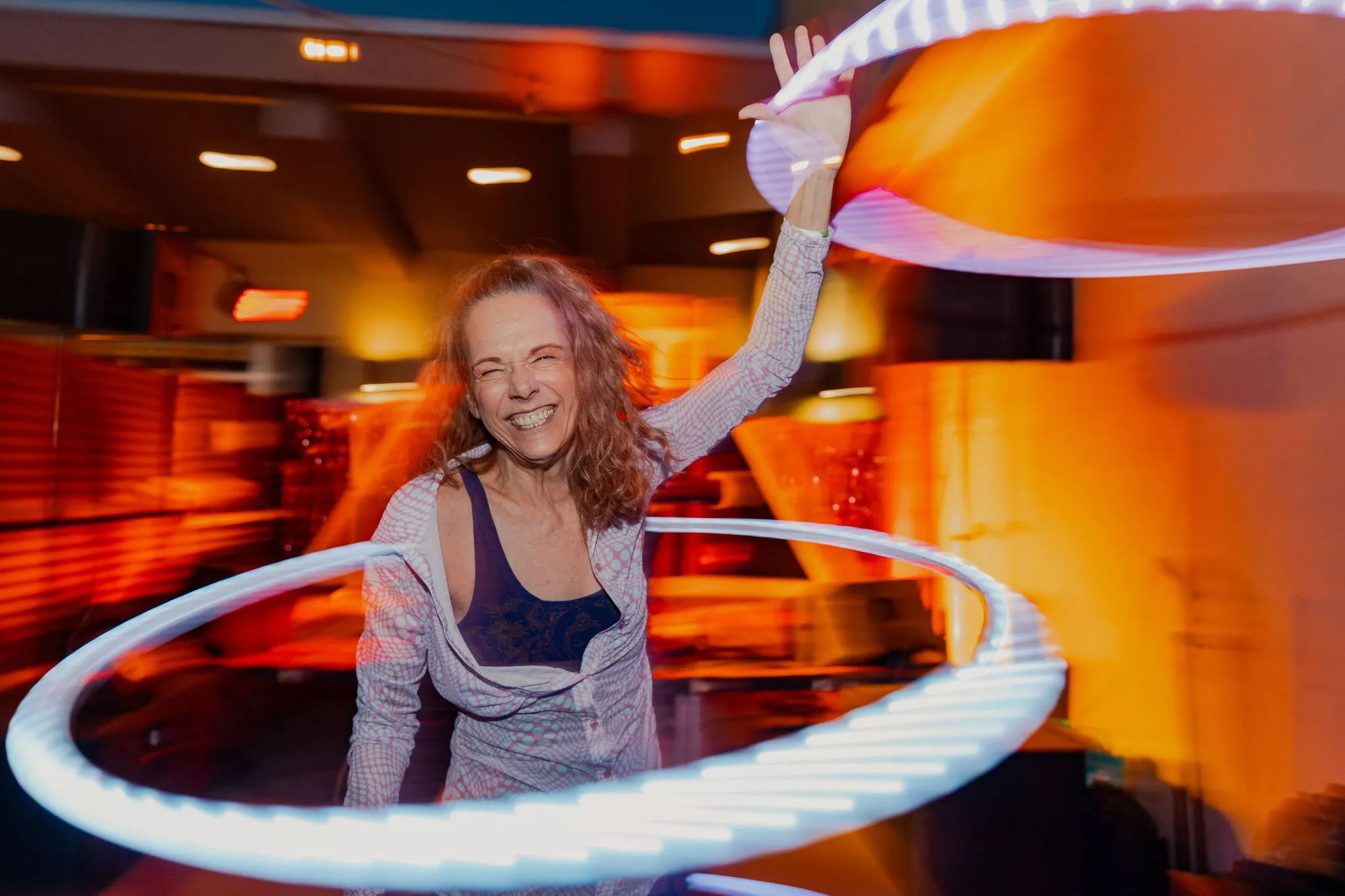 Audience members were encouraged to express themselves. One individual used hola hoops.