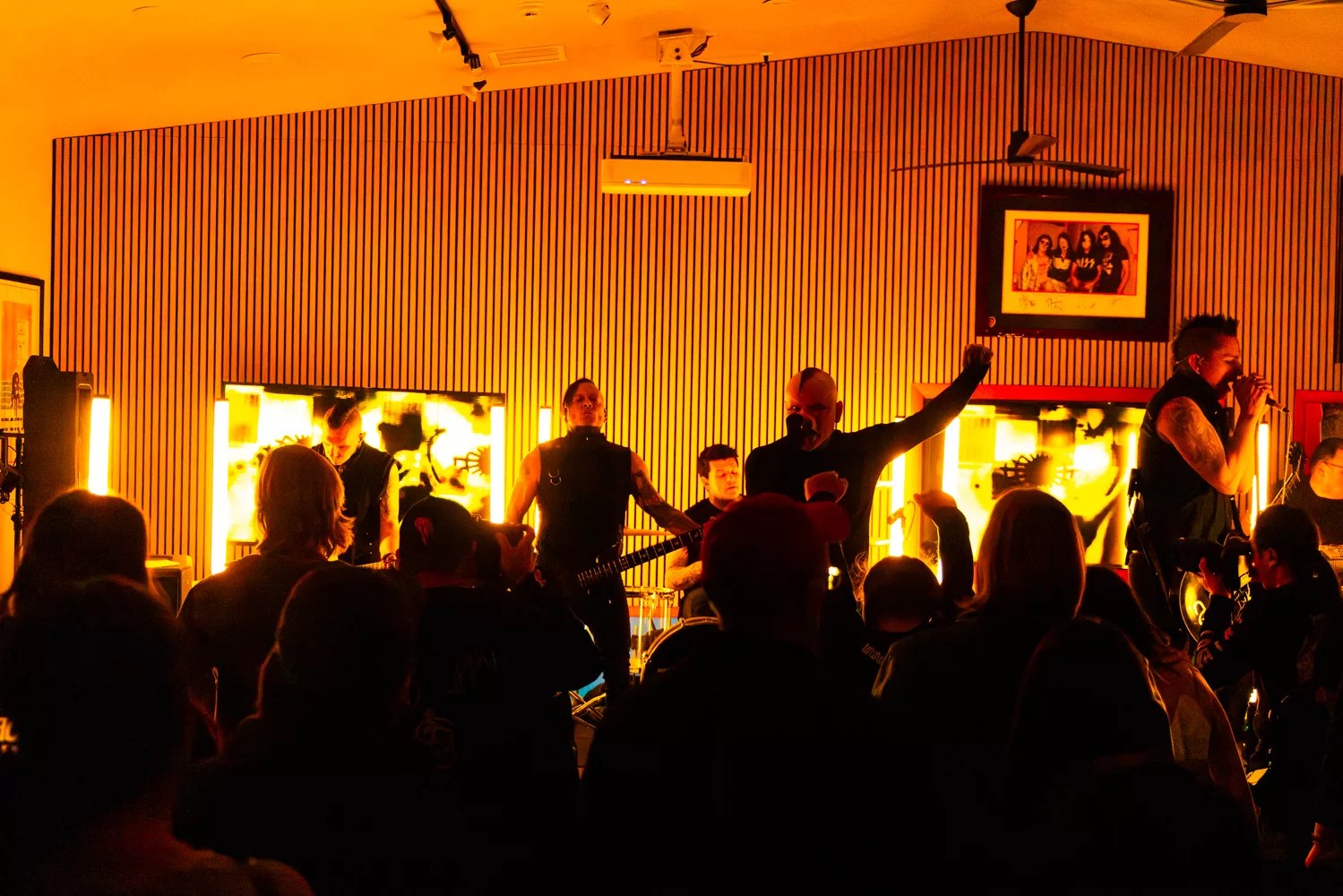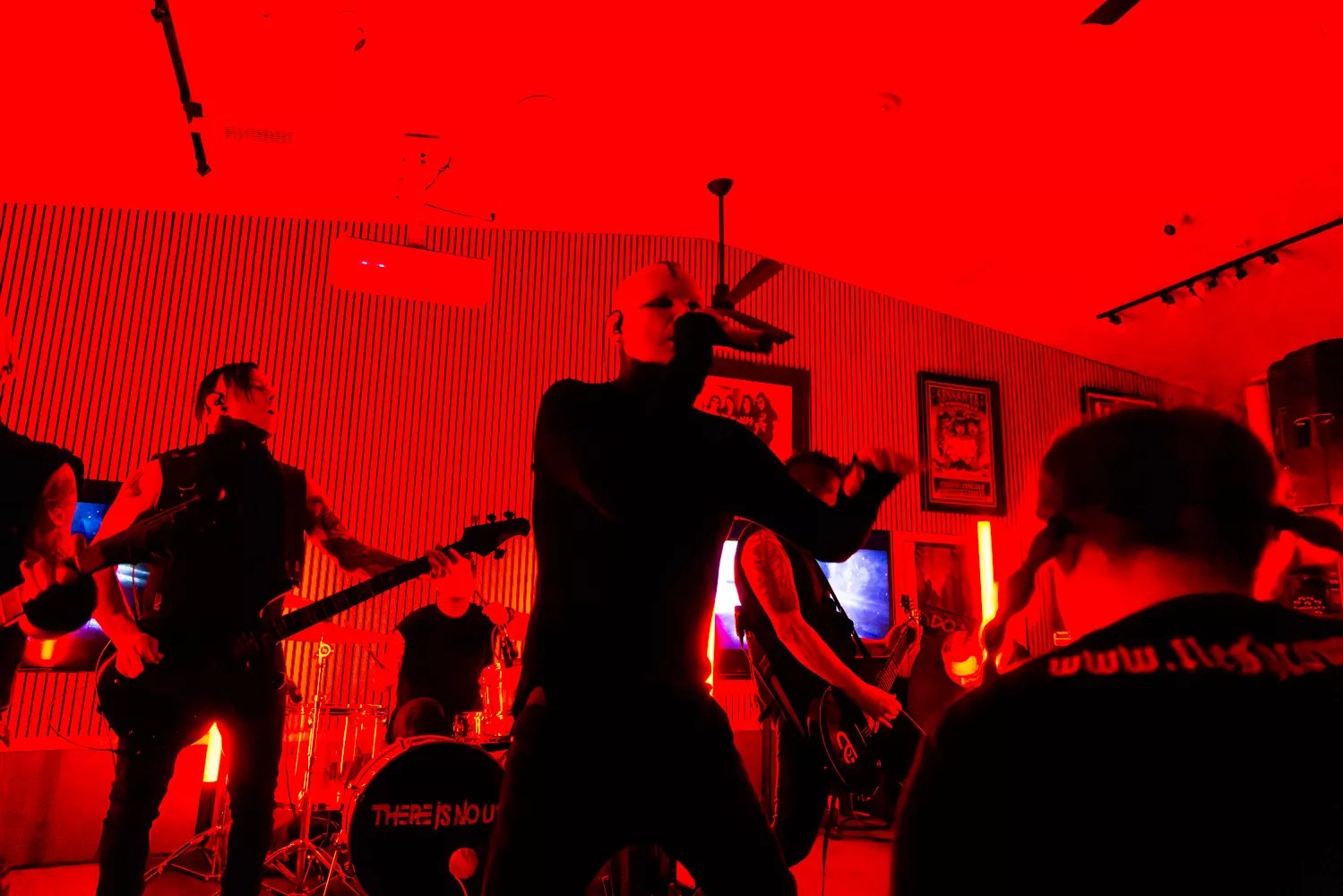 It was an evening of compelling images and ear-splitting music on Dec. 14 when industrial band There Is No Us performed at Queen B Vinyl Cafe, Tool frontman Maynard James Keenan’s latest business venture.