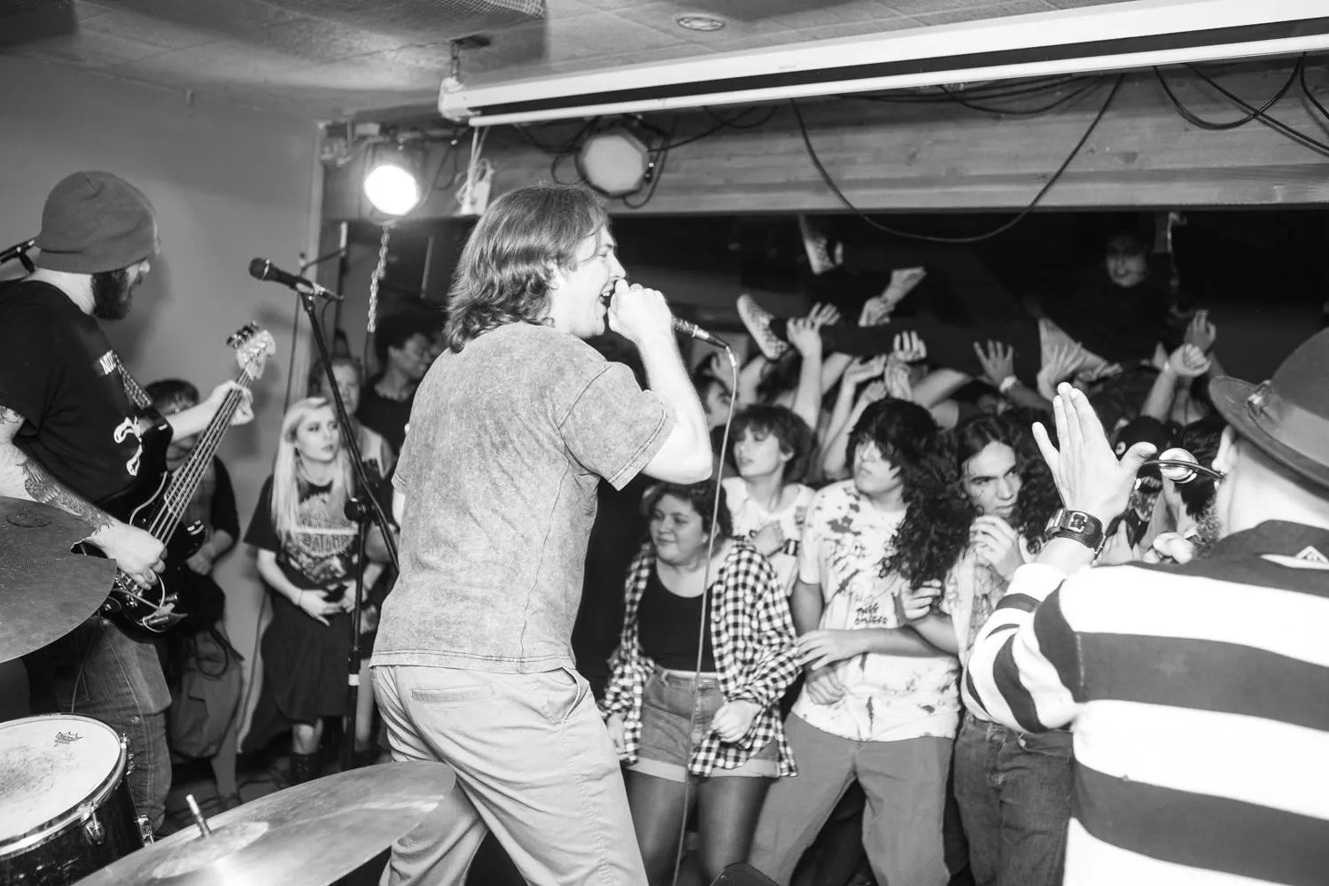 Yeah, I feel like the audience is a member of the band when it comes to live shows. If we can’t win the energy of the audience, the show is going to be uncomfortable and jarring. We can only really operate at one level of intensity, so it’s kind of an all-in ordeal. Dave has reminded me on a couple occasions that part of the reason we can convince people to let loose and freak out during shows is our utter lack of machismo, and I think that’s true. If we were all very muscular, Type-A punk dudes, our enthusiasm and energy might come off as aggressive, which is not at all interesting to me. But I think us being who we are sends out more of an invitation to be weird and have fun, as opposed to punching a stranger in the face.