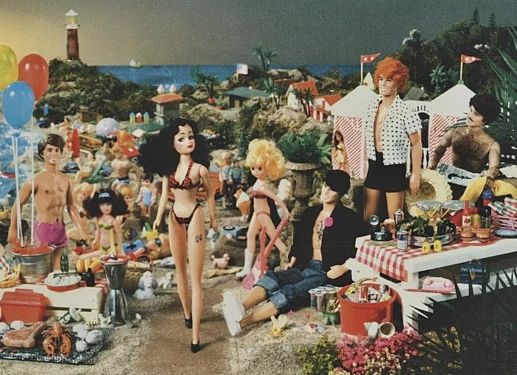 His biggest contribution to “Bikini Wax,” though, was its memorable rear cover photograph depicting a crowded, colorful seaside scene where each band member and various beach-goers were each represented by dolls.