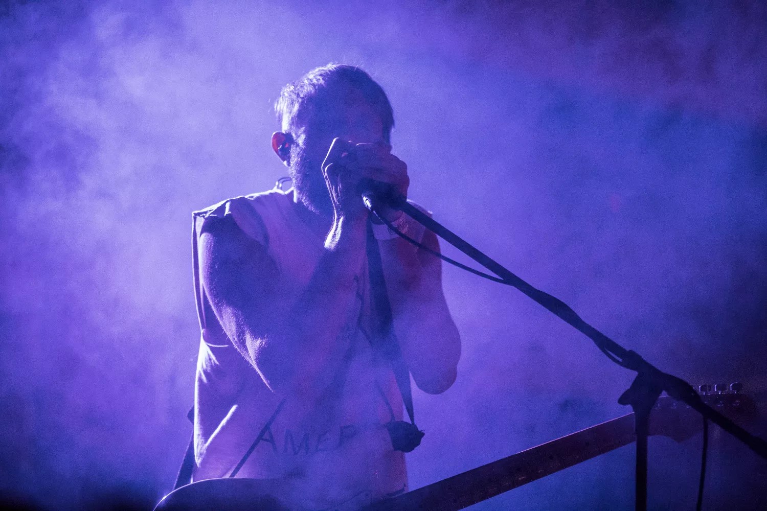 Past Daniel Funkhouser adjusting absurd costumes, past the smoldering food trucks and various busking brass bands, HEALTH was already halfway through “Get Color,” their best electro-industrial tune. The alley acoustics of this little sliver of concrete were perfect for this noisy trio – the blasting drums bounced