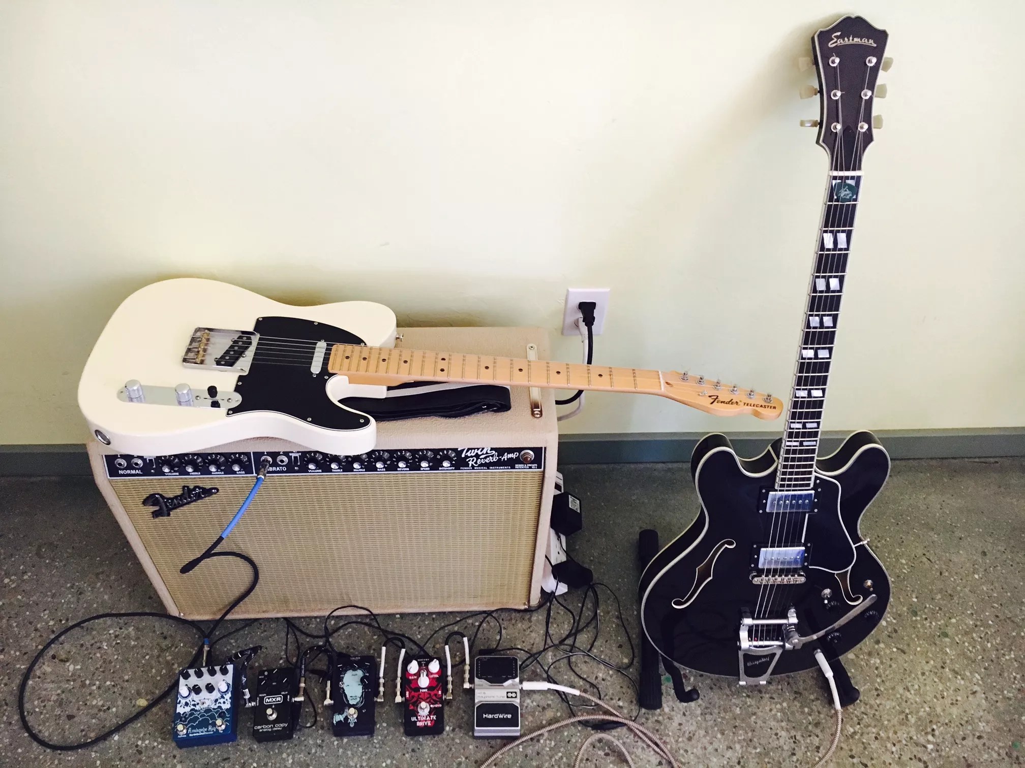 I love my Twin and Eastman for reasons described … Other than that, I love my American Deluxe Telecaster. A friend recently gave me an Earthquaker Devices Avalanche Run pedal. That is going to be a lot of fun to work with on upcoming music.