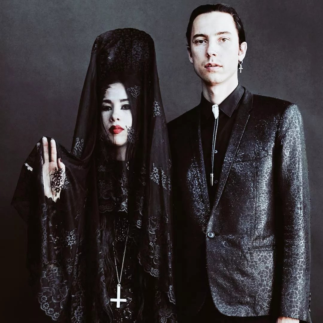 The influence of Anger in particular can be seen in the band’s music videos, which the pair conceive of and create together (they share a background as visual artists). The video for “Sex Magick,” for example, sees the couple showing off the actual tools of their trade. “We wanted to give people a sneak peek into our magical practice, so everything you see in the video are actual pieces from our collection that we do use in ritual,” she says. “That’s our altar.”