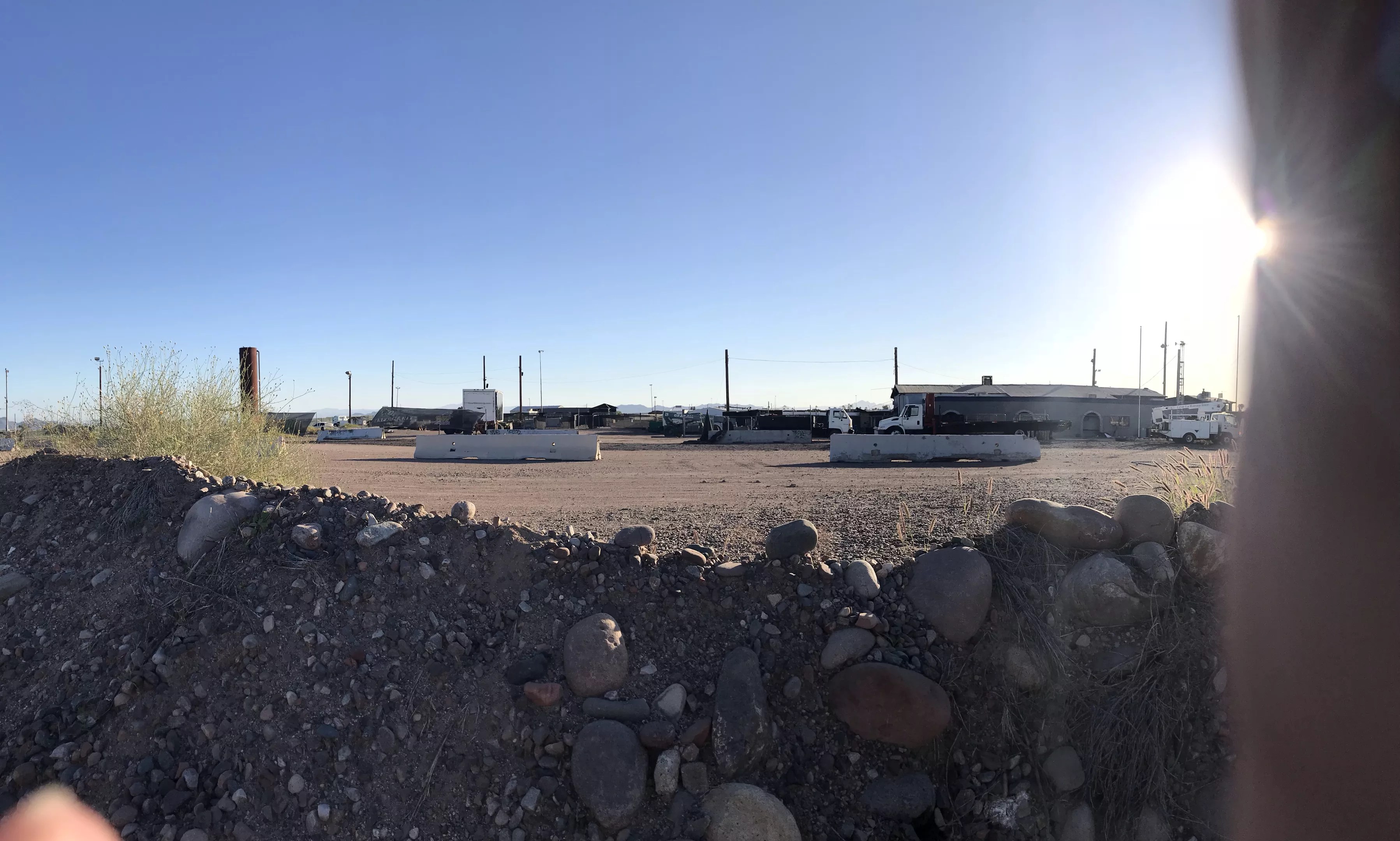 When we drove by the site this morning, we found what was essentially a vacant lot. There were no stages, tents, or portable toilets set up. We did, however, find signs left behind from the Scarizona Scaregrounds, a haunted house attraction that ended its run on November 3. All of this contradicts a post made by festival co-founder Runar Berntsen that the stage has already been set up.