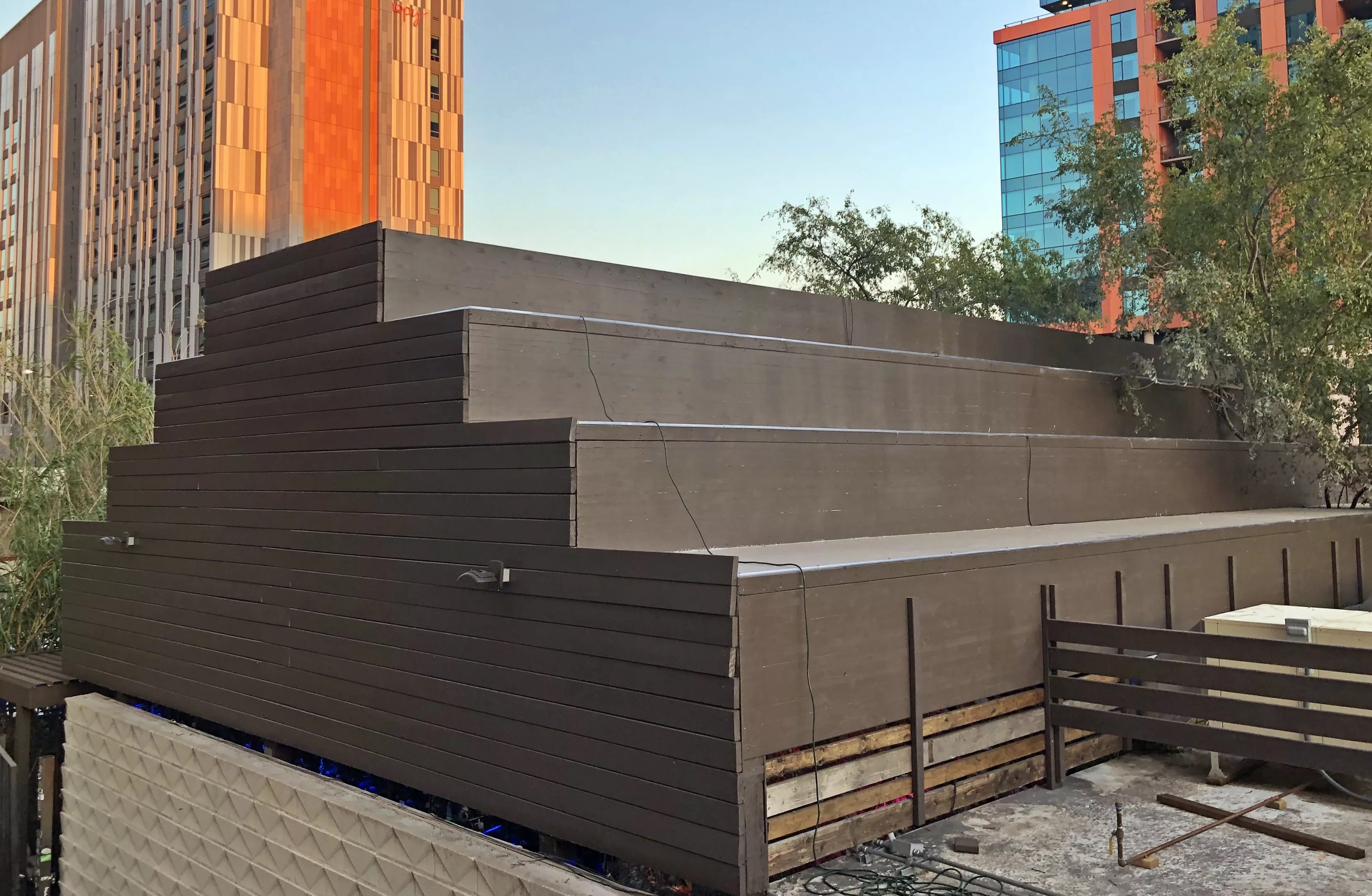 The step-pyramid structure over Shady Park’s outdoor patio.