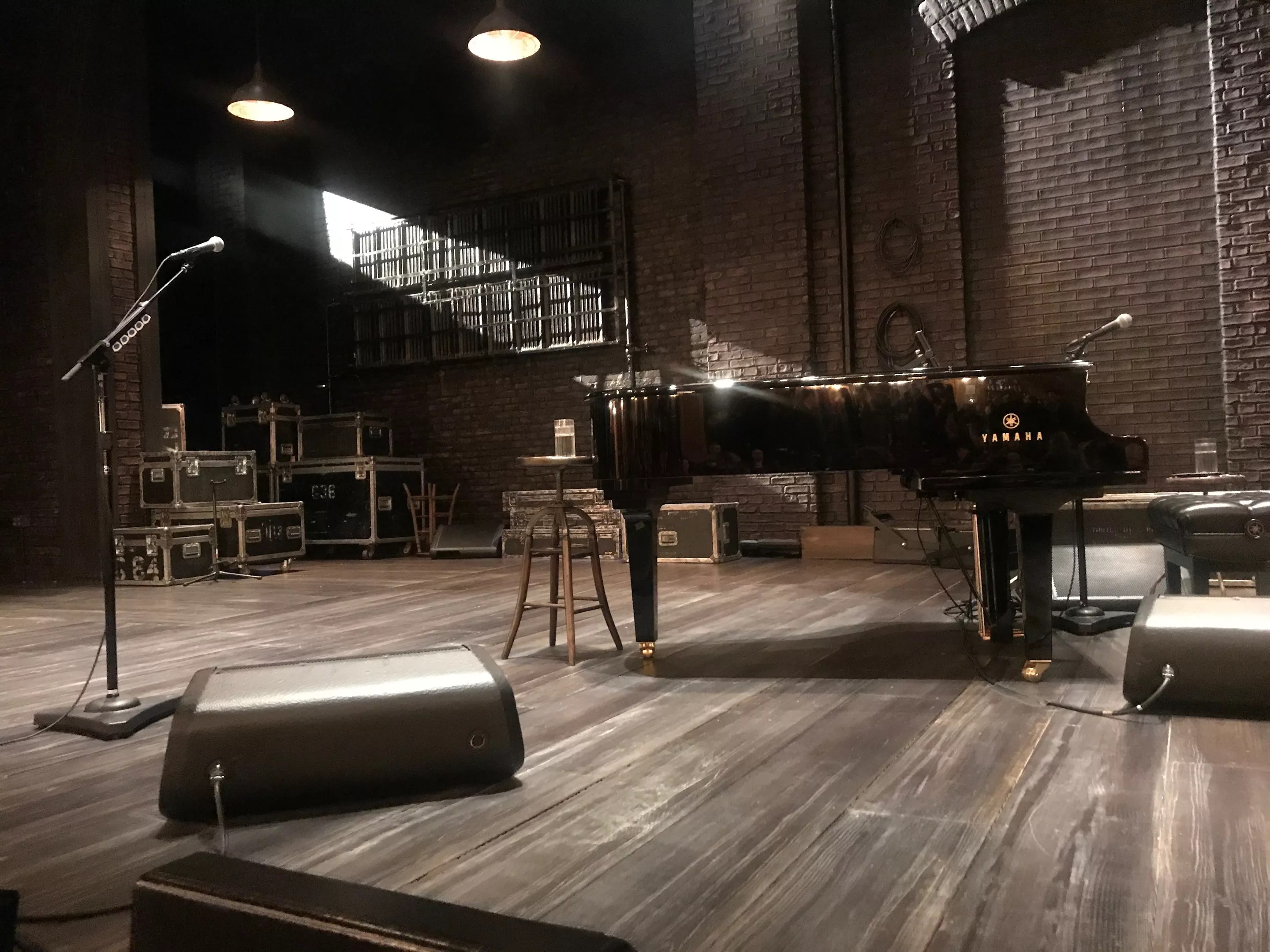 I’ll get to relive the buzz in the theater before Springsteen takes the stage, where the simple set includes an upright piano, stool, mic stand, and smattering of amplifiers with trailing black cords.
