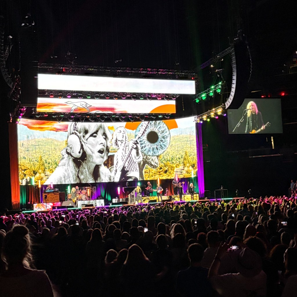 Nicks performed in front of massive screens that displayed images that were coordinated perfectly with each tune. Many featured pictures of her from the past, with her big eyes and flowing long hair. Although the images could be a bit on the nose — a flying white dove during “The Edge of Seventeen,” anyone?—they always managed to be effective. I also enjoyed the dark images of lightning and a lighthouse for the track “The Lighthouse.” Written in Chicago by Nicks in response to the fall of Roe v. Wade, it’s impressive that she’s still able to craft powerful jams after all this time.