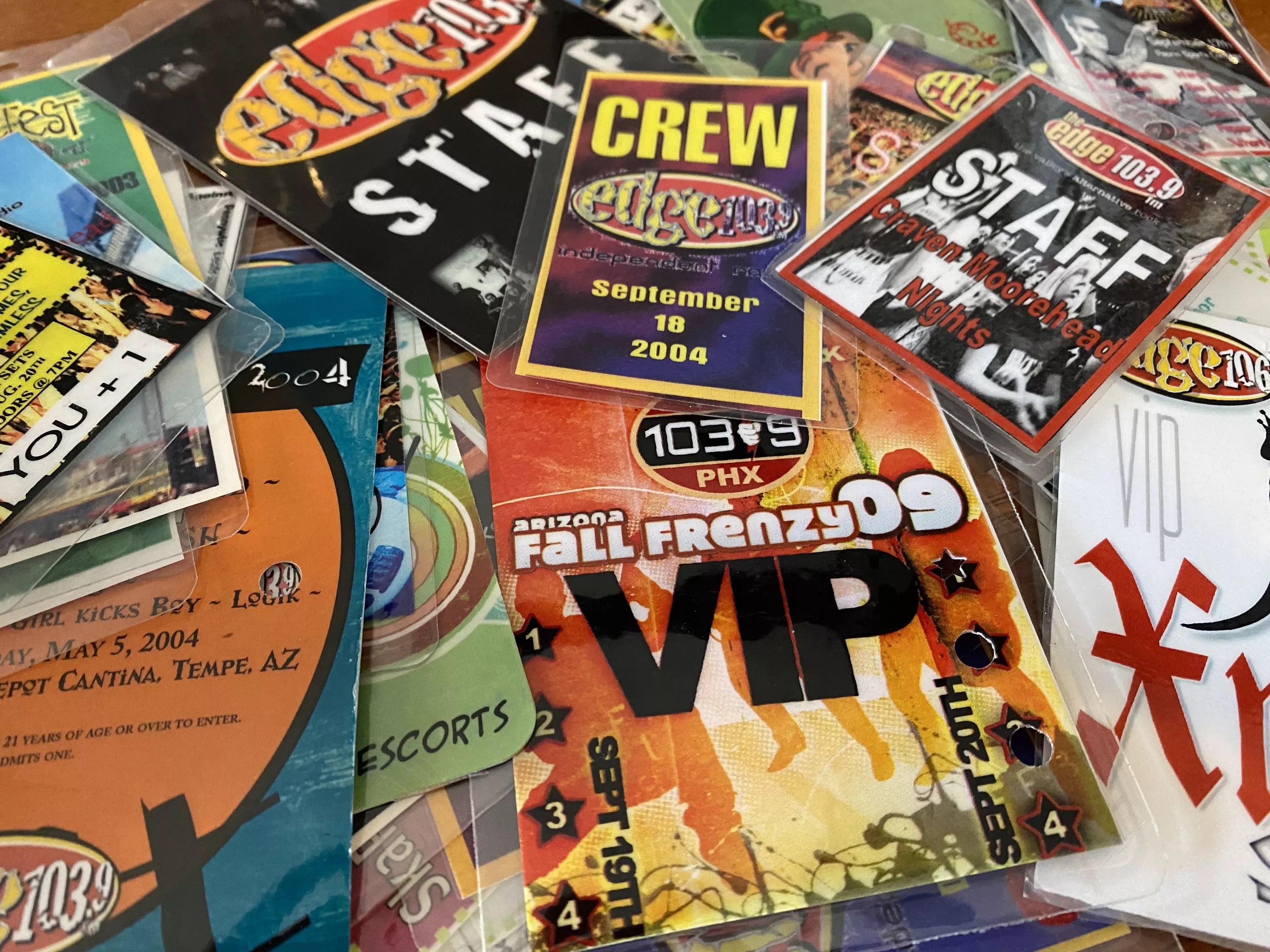 Joe Maier’s collection of KEDJ memorabilia might be small, but its definitely heartfelt. Inside his Tempe home, the photographer, blogger, and local music booster who goes by Every Show Joe has various swag from the now-defunct alt-rock station known as The Edge. The collection includes a bottle opener, ticket stubs, and various CD comps.