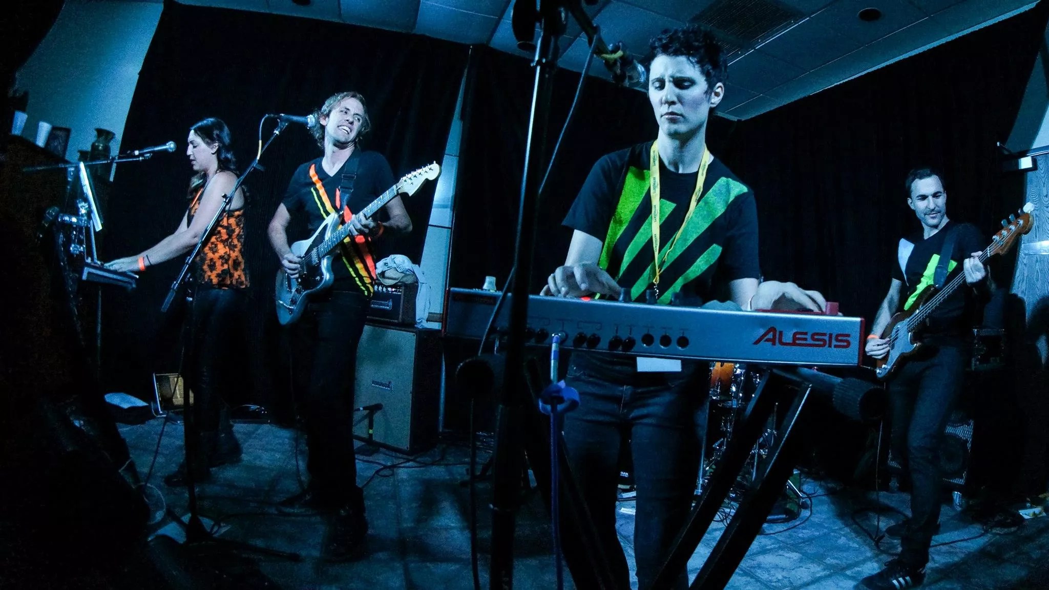 Lauren Henschen (right) did vocals, guitar, and synthesizer for Super Stereo.