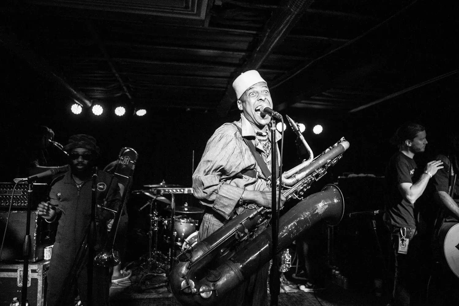 Angelo Moore of Fishbone on the mic at the band’s Rebel Lounge show in June 2016.