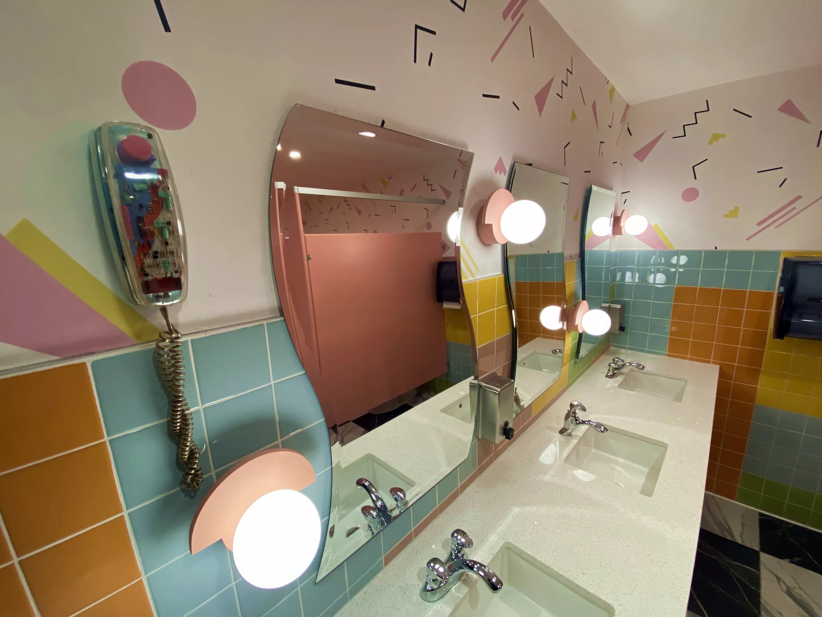 The restrooms at Thundercat Lounge featured a “Saved By the Bell” and “Pee-wee’s Playhouse” aesthetic.