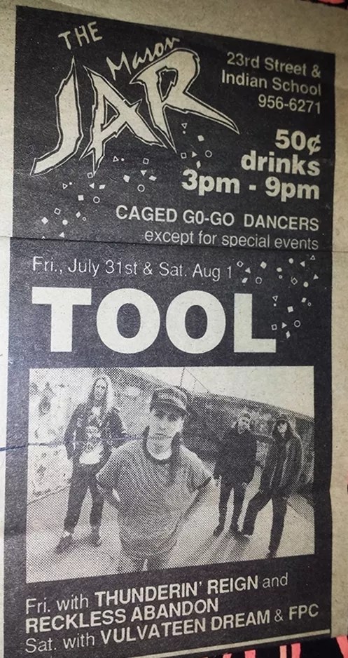 The Mason Jar’s advertisement from a July 1992 issue of Phoenix New Times promoting a pair of Tool shows.