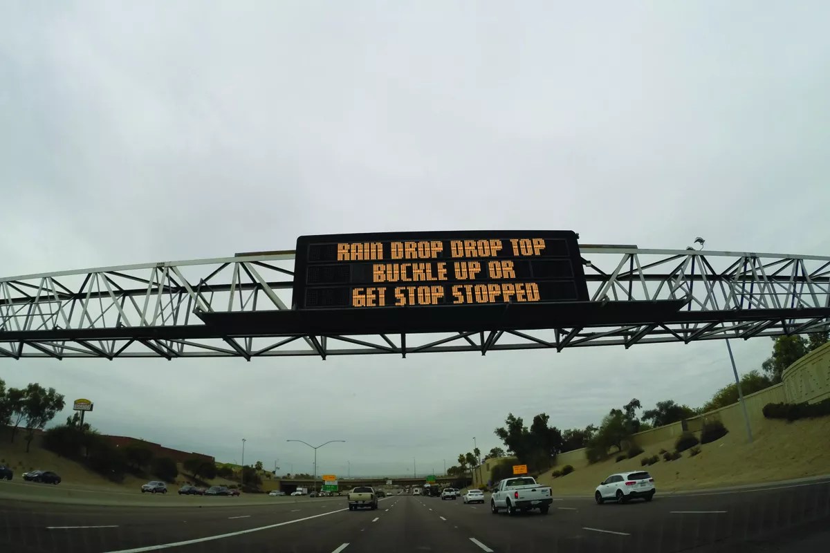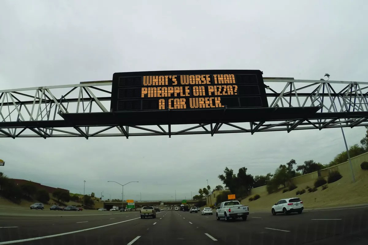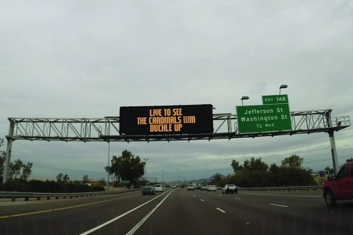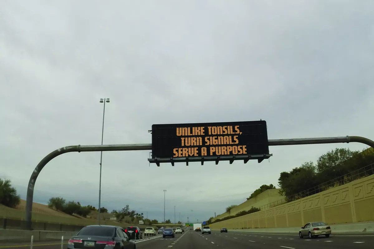 Back in February, ADOT issued a challenge: Prove you’re funnier than us. Anyone could submit their ideas for traffic safety slogans, and then ADOT would pick two winning entries to display on overhead highway signs.