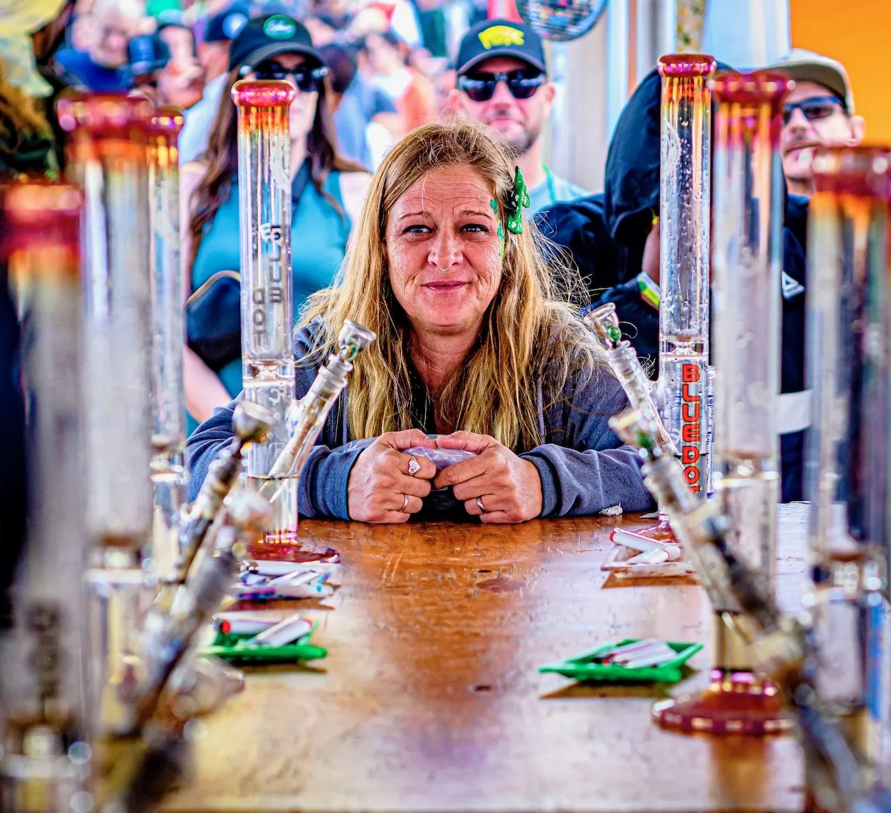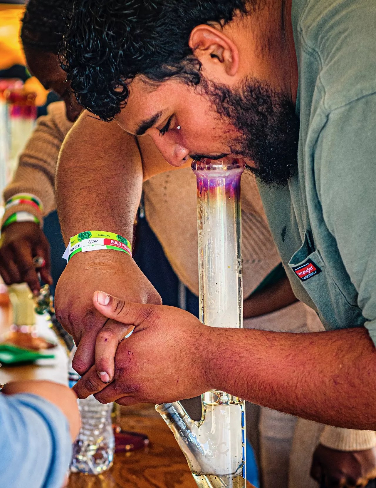 A contestant in the Bong Wars competition races to smoke .75 grams of flower.