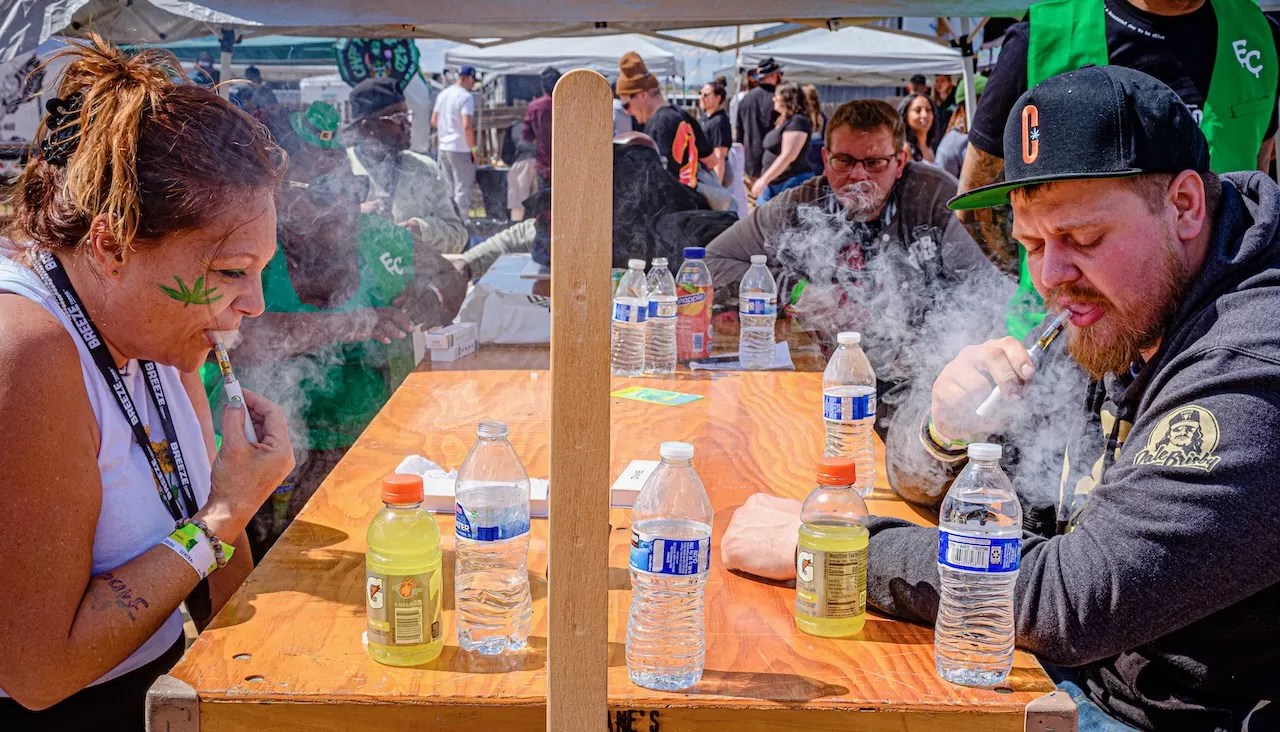 Contestants in the Bong Wars competition race to smoke .75 grams of flower.