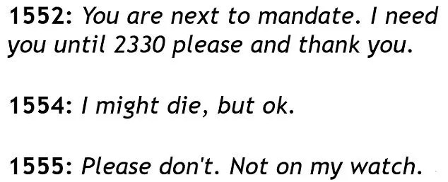 1552: You are next to mandate. I need you until 2330 please and thank you.
